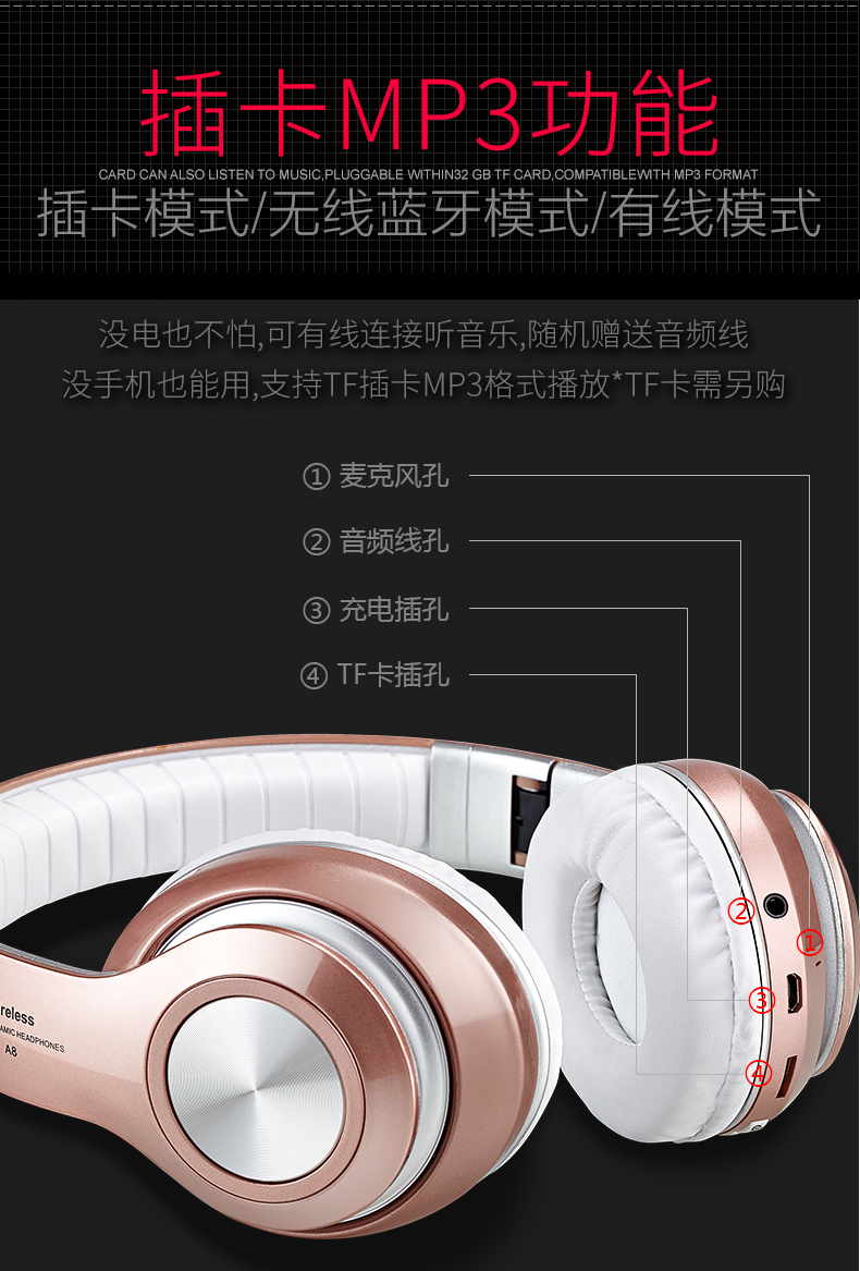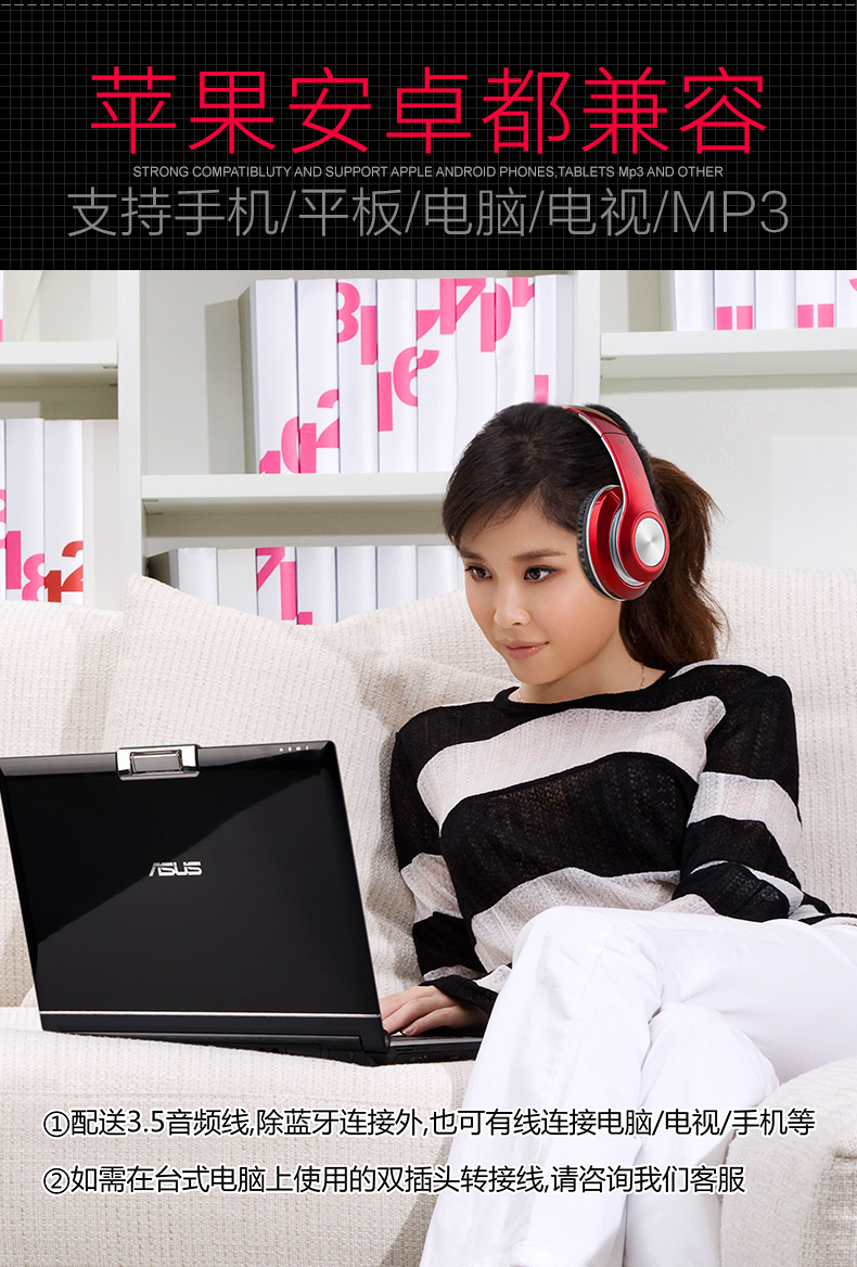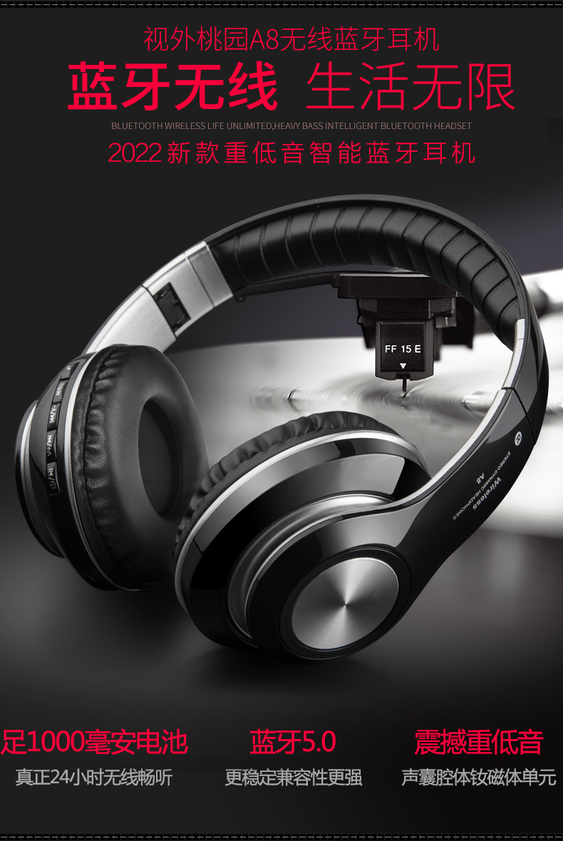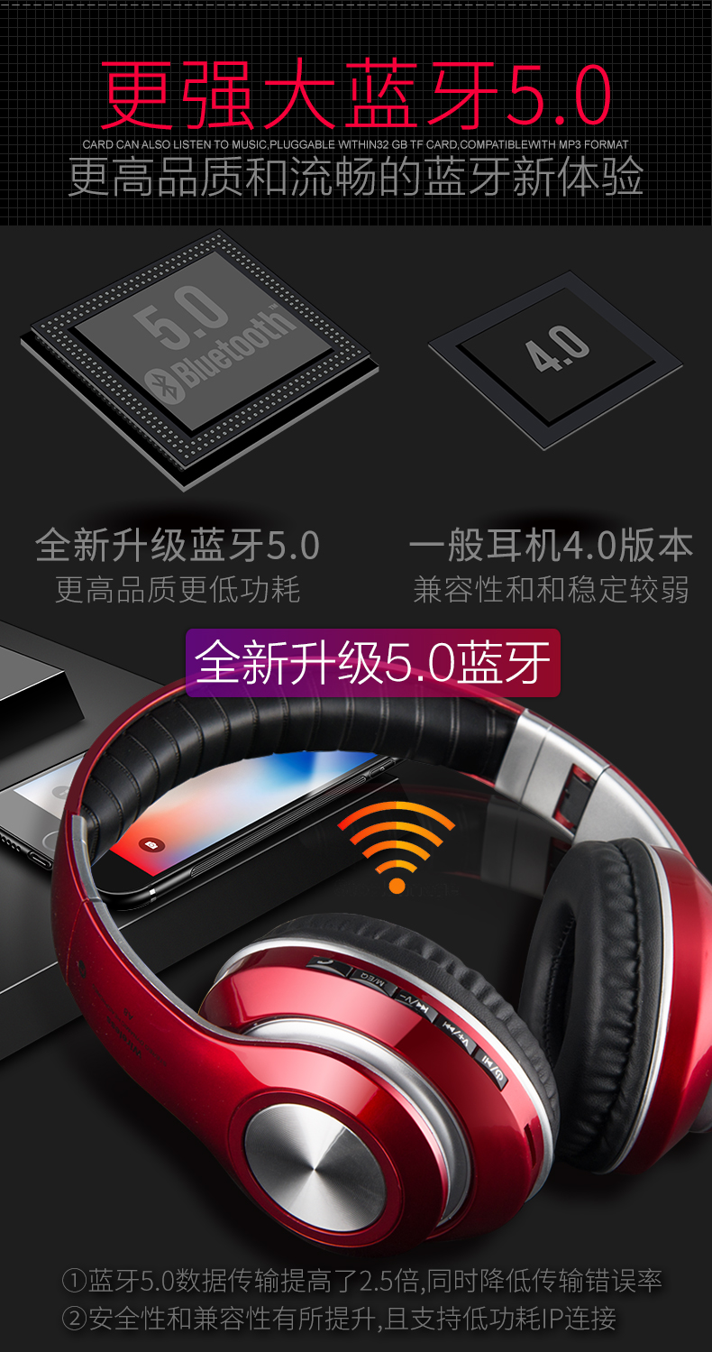 • 商品名称:蓝牙耳机头戴式无线手机电脑通用耳麦音乐运动跑步游戏电竞专用吃鸡插卡男女生可爱低音炮降噪全包耳小米带麦