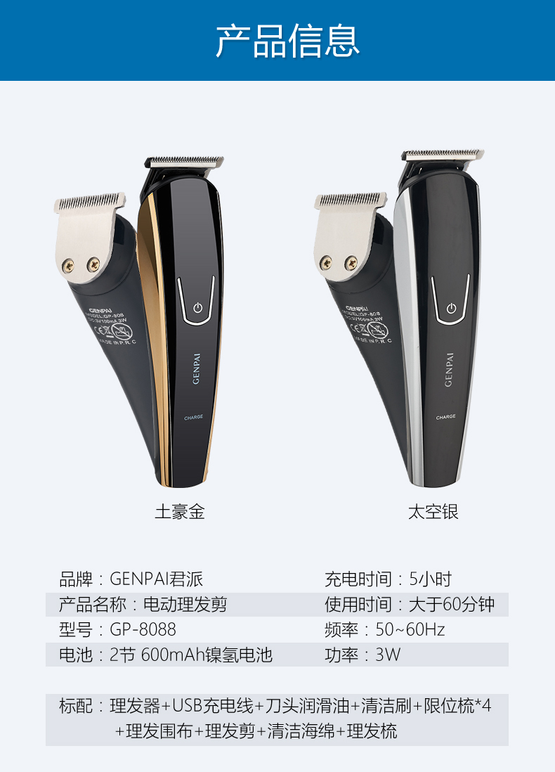 • 商品名称:君派理发器电推剪头发充电式电推子成人儿童剃发器电动剃头刀家用