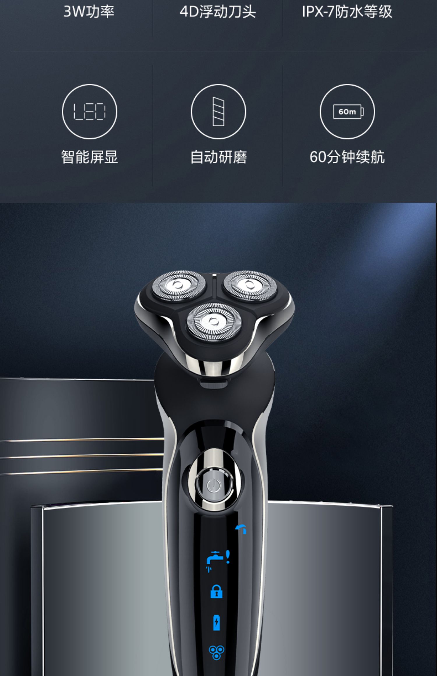 • 商品名称:4D剃须刀电动刮胡刀男士全身水洗智能充电式胡须刀正品刮胡子刀