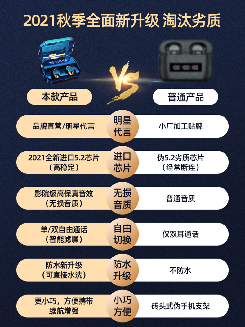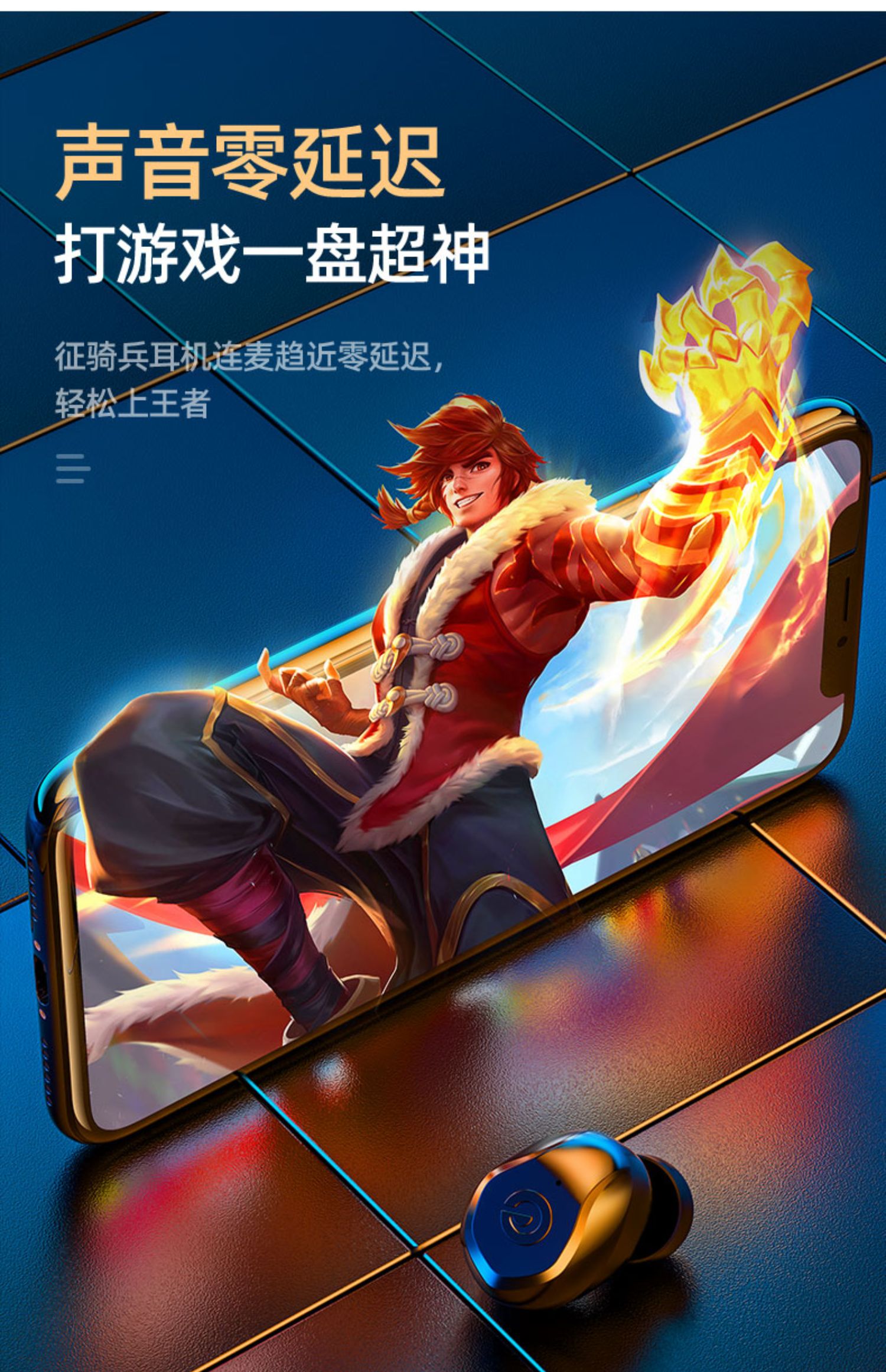 • 商品名称:真无线蓝牙耳机双耳运动型入耳式高音质高端2021年新款男女士款降噪高颜值征骑兵tws适用于苹果vivo华为oppo
