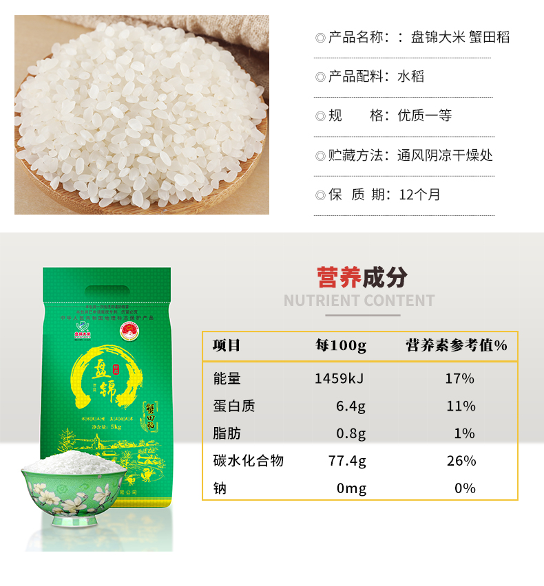 • 商品名称:盘锦蟹田稻米一级大米家常香软稻田米当季21年新米稻米家庭装10斤