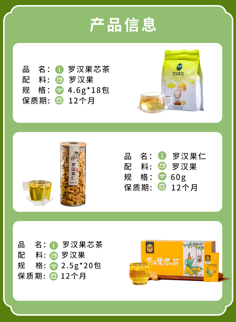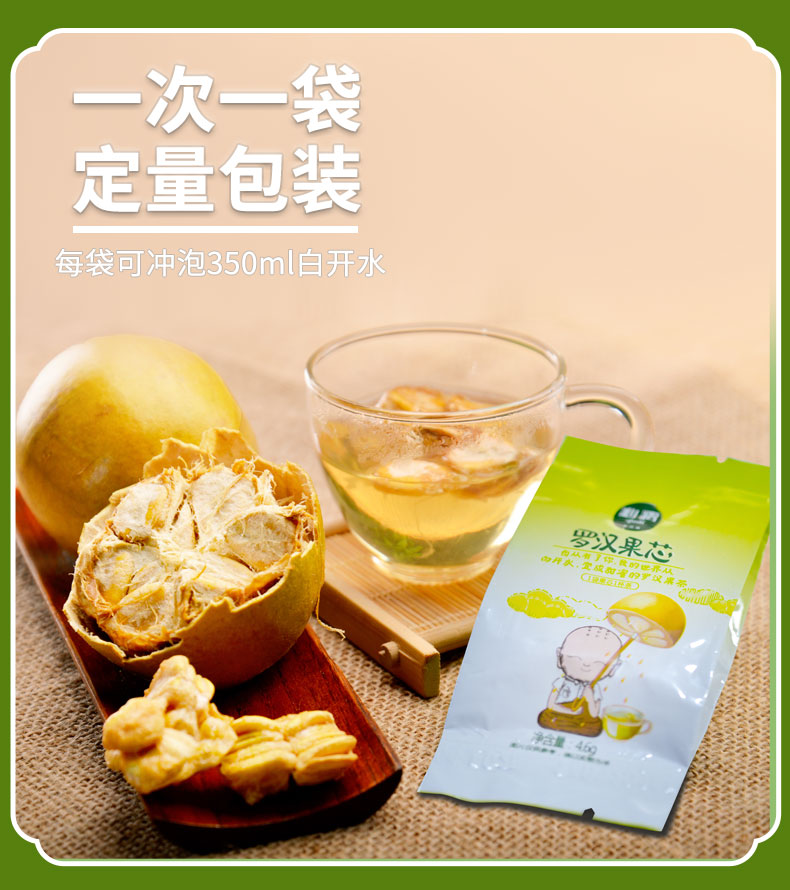 • 商品名称:沁漓罗汉果芯茶包罗汉果茶小包装桂林特产罗汉果干果泡茶新鲜仁籽