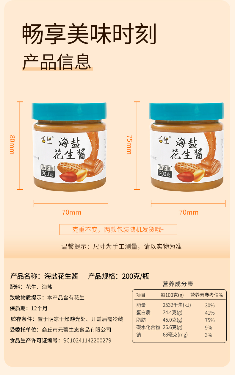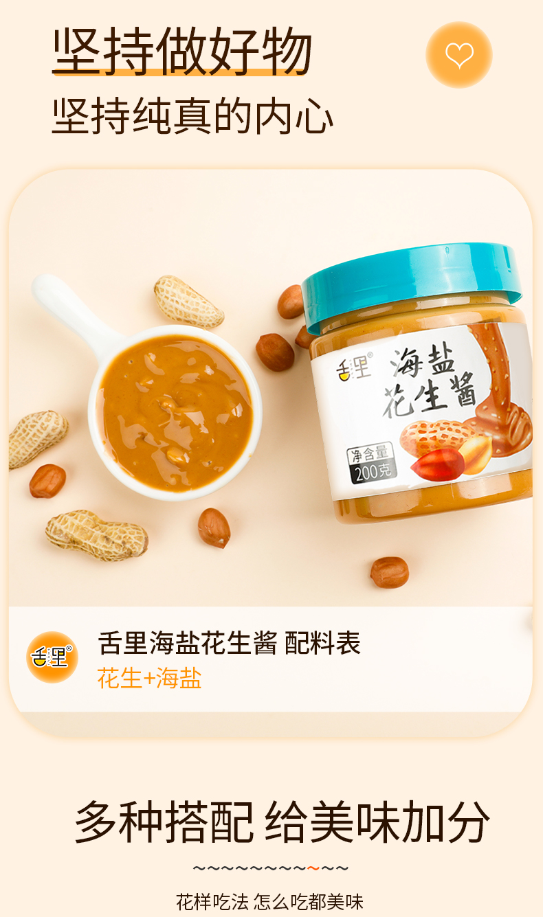 • 商品名称:【包邮】舌里海盐花生酱200g/罐早餐面包酱调味料火锅蘸料凑单品