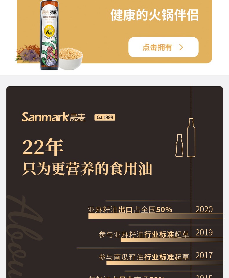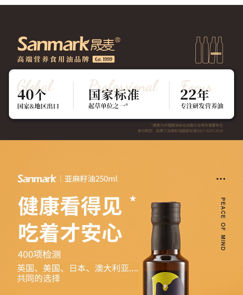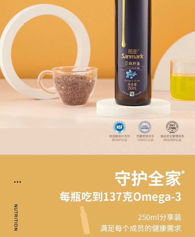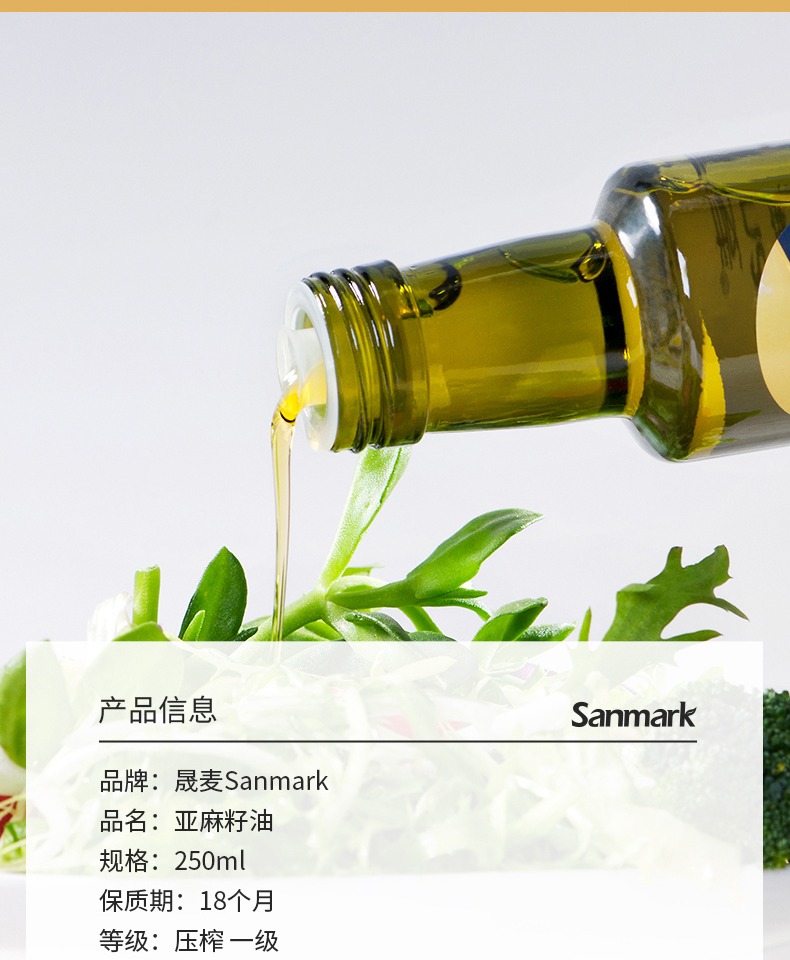• 商品名称:晟麦亚麻籽油250ml 冷榨一级食用油低温亚麻油官方旗舰店正品初榨