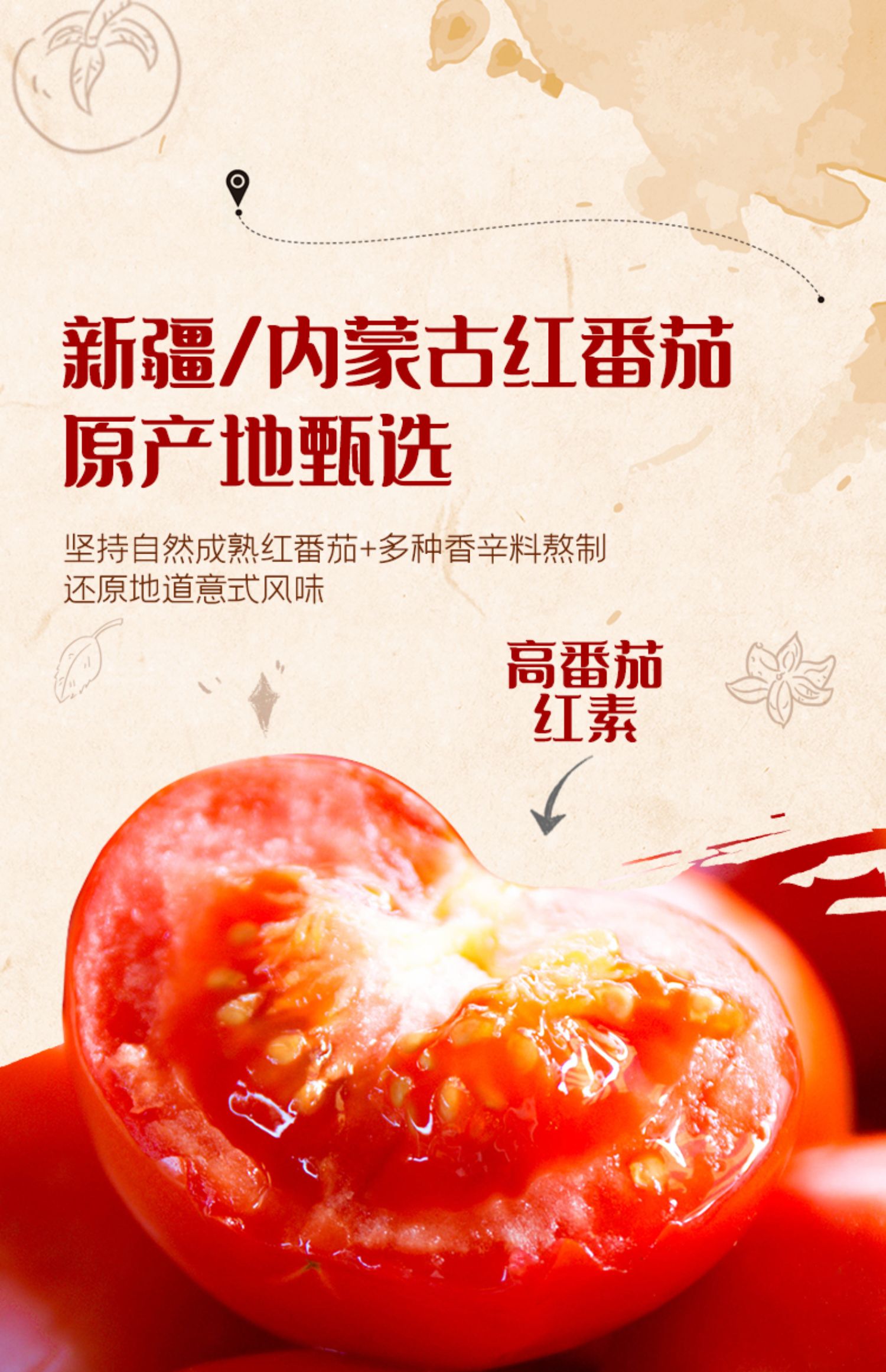• 商品名称:百钻披萨酱pizza做比萨家用烘焙意大利面手抓饼番茄酱调配料240g