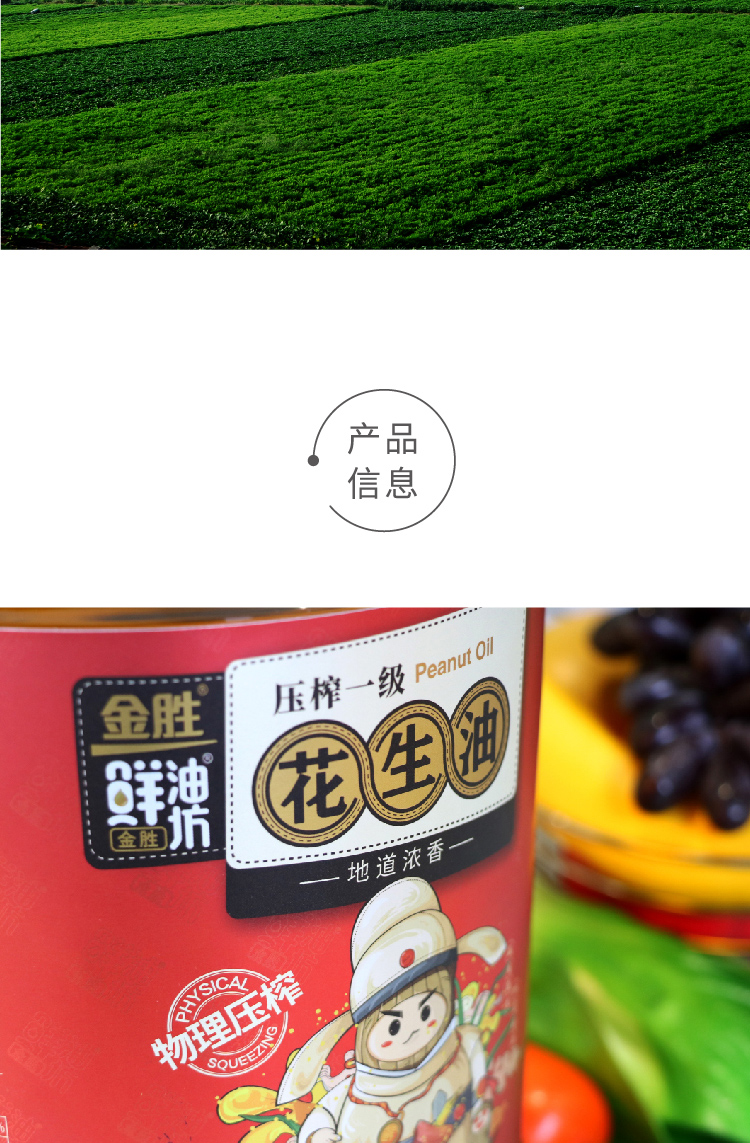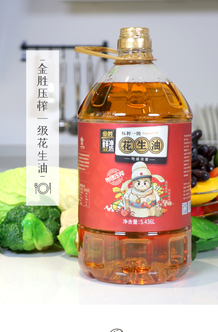 • 商品名称:金胜鲜油坊压榨一级地道浓香花生油5.436L/桶实惠家庭装