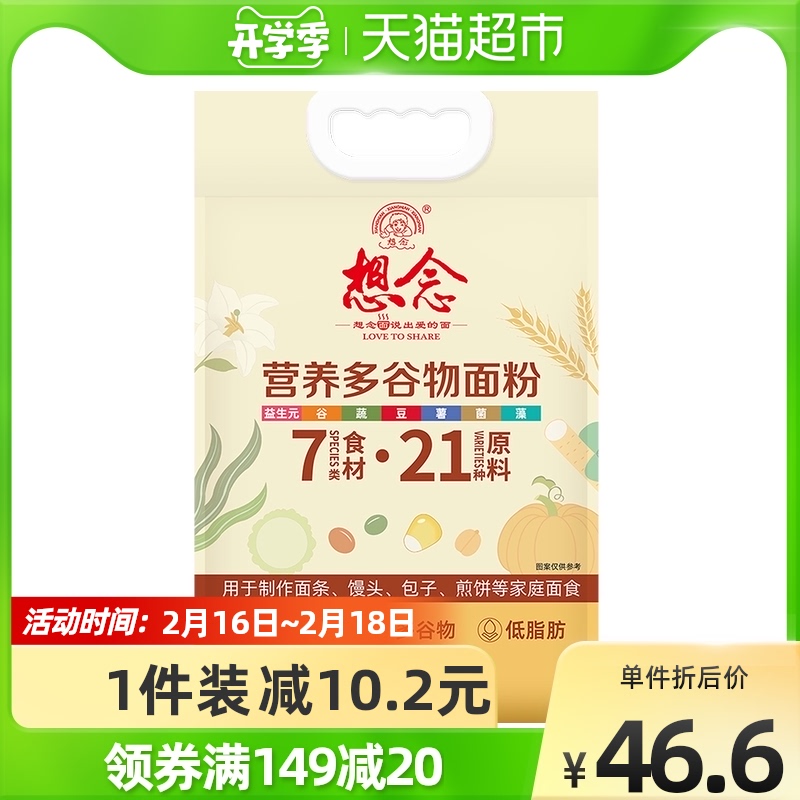 • 商品名称:想念多谷物营养杂粮面粉5kgx1袋馒头包子粉含藜麦青稞鹰嘴豆粉