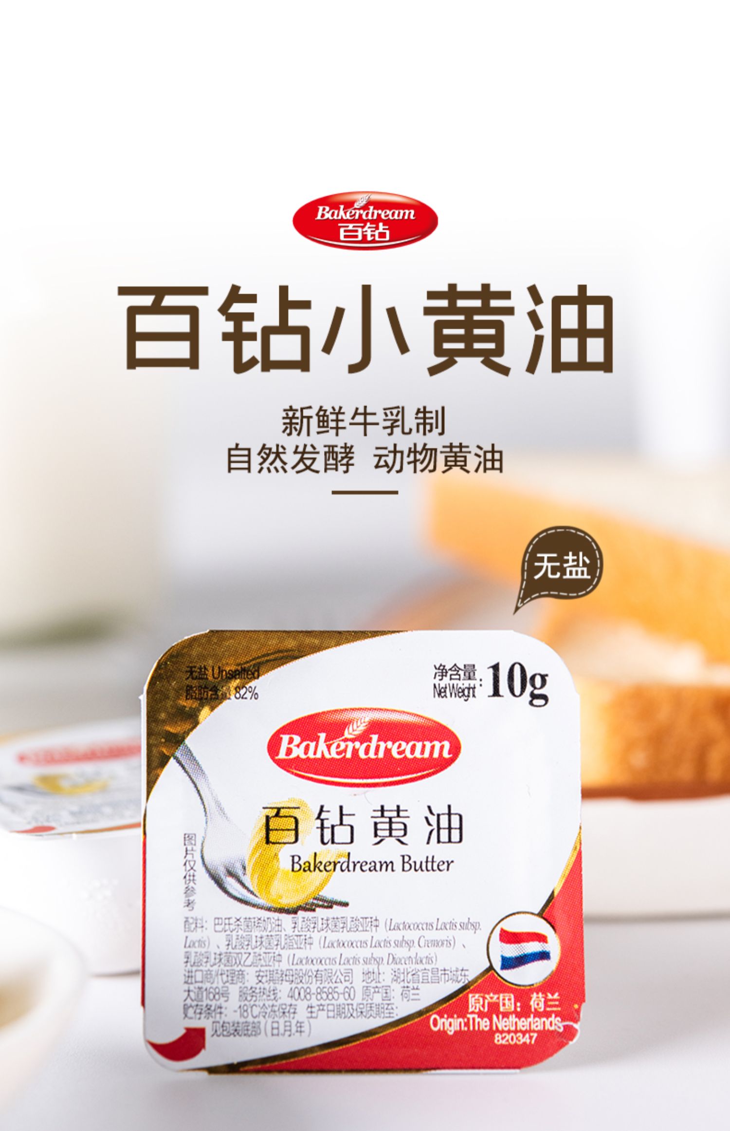 百钻无盐黄油10g*20粒小包装食用动物黄油家用做面包蛋糕烘焙材料