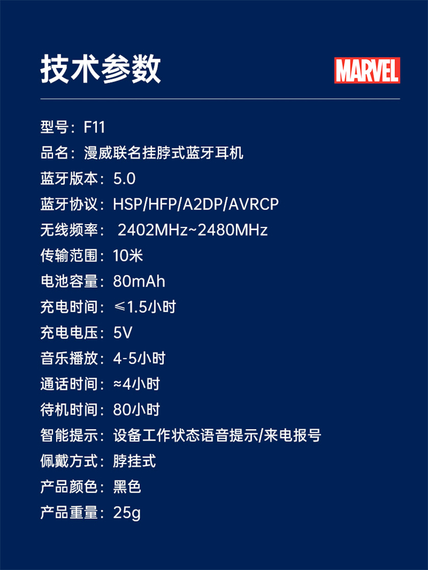 • 商品名称:漫威联名tws无线蓝牙耳机双耳运动钢铁侠入耳式复仇者联盟长续航