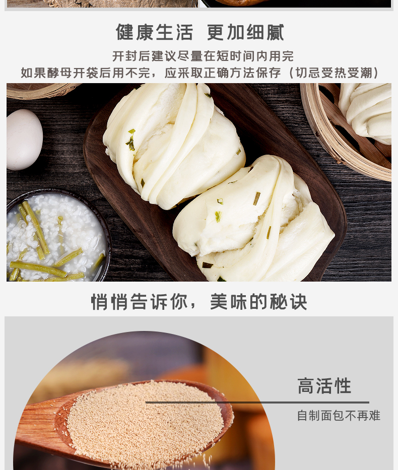 • 商品名称:安琪酵母家用干酵母小包装低糖高活性馒头包子发酵粉5g15g100g500