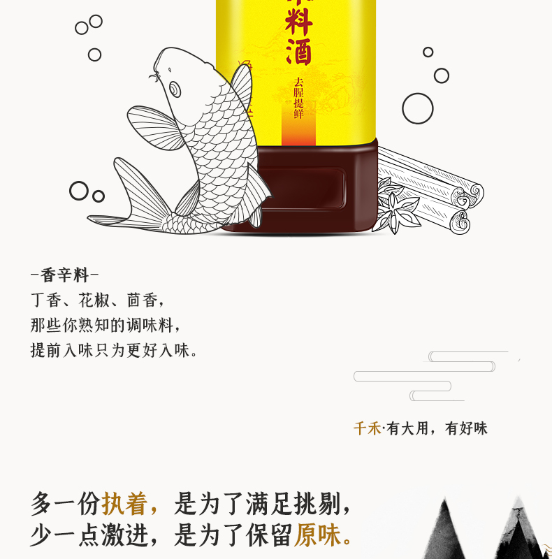 • 商品名称:千禾糯米料酒1L 去腥解腻增鲜提味 烹饪清蒸调味料酒