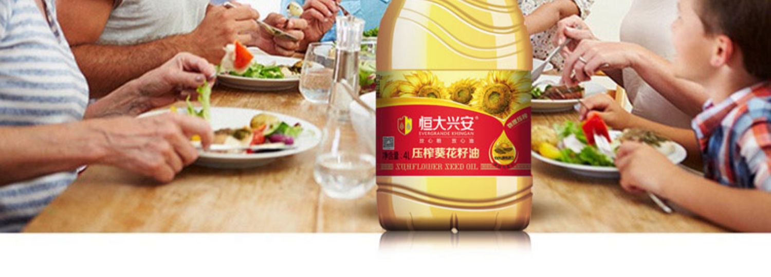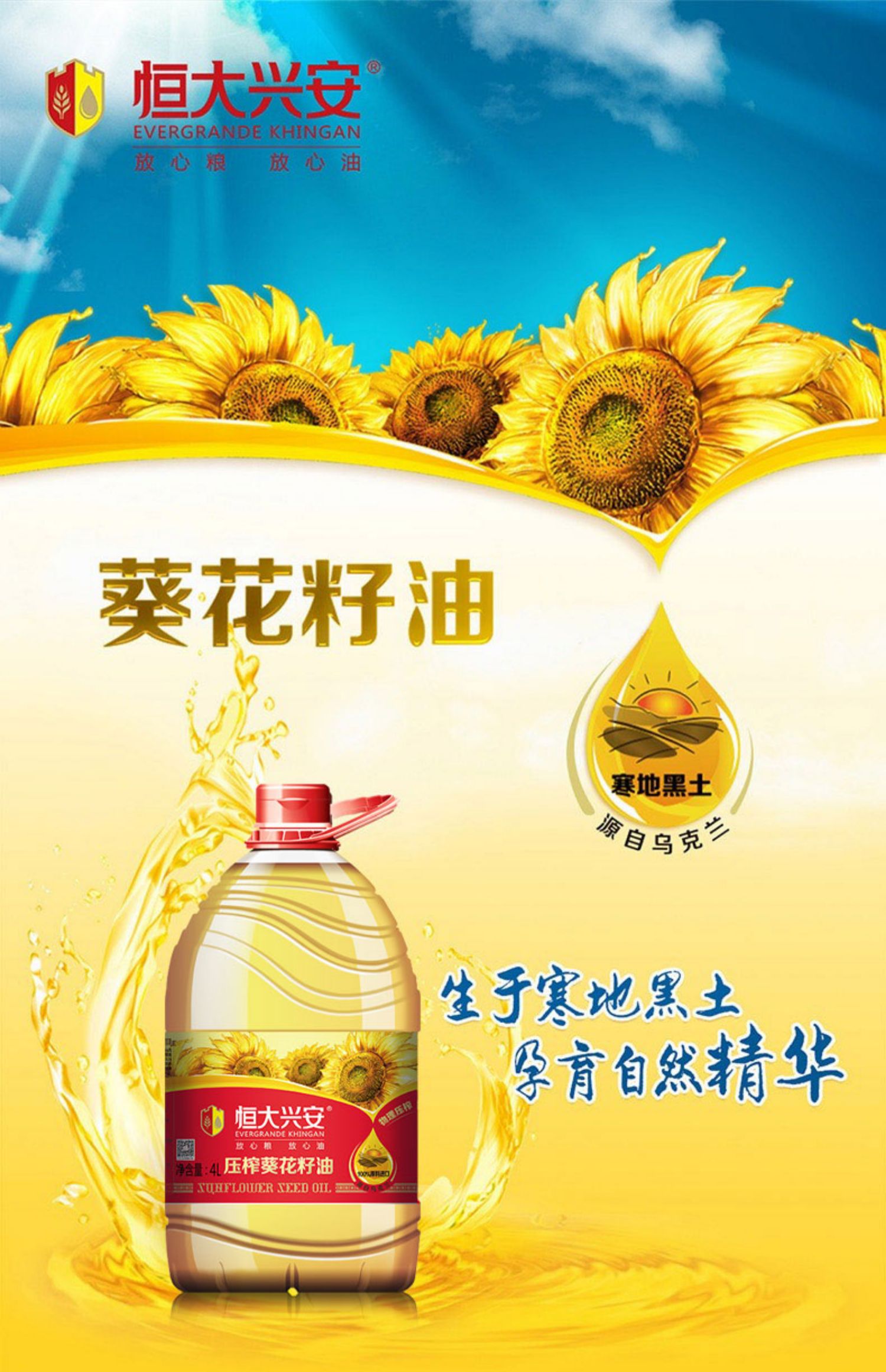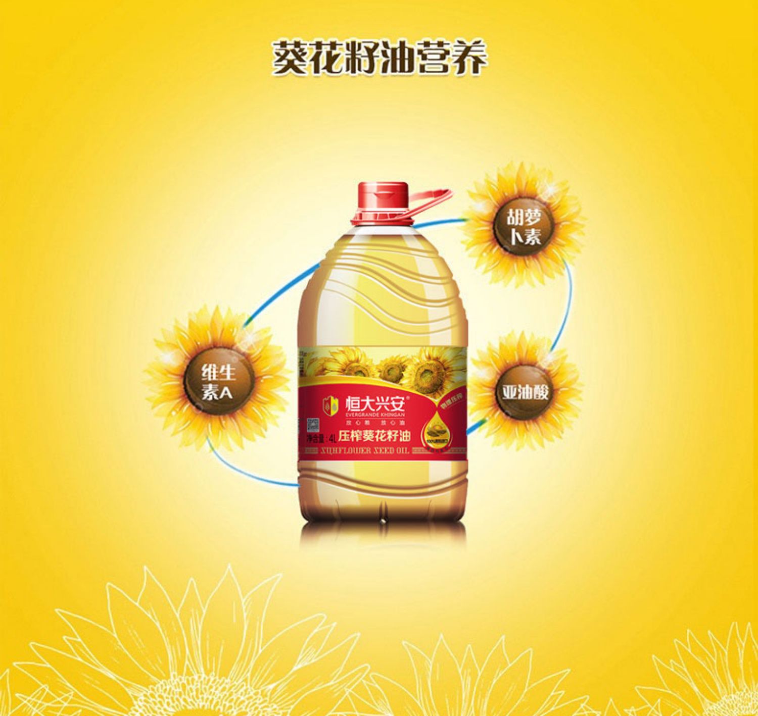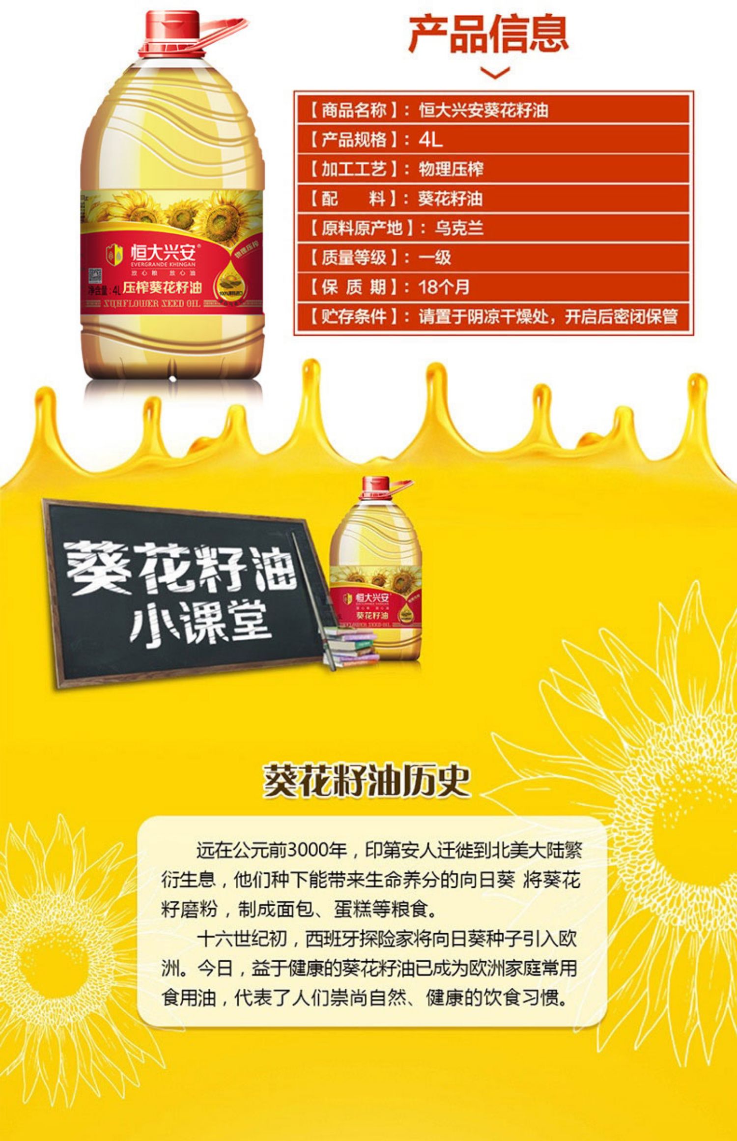 • 商品名称:恒大兴安 葵花籽油4L压榨一级乌克兰进口原料植物食用油家用炒菜