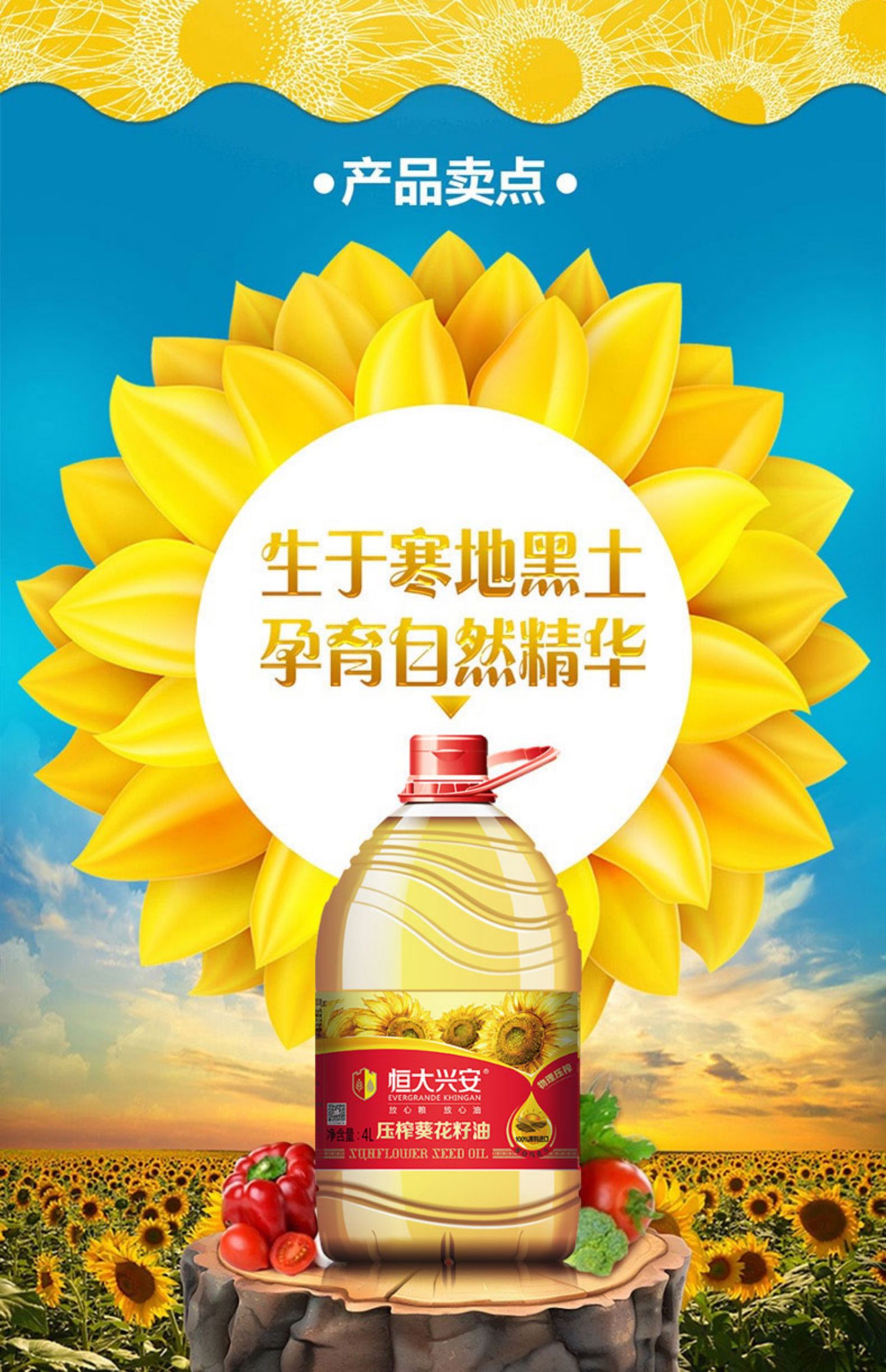 恒大兴安 葵花籽油4L压榨一级乌克兰进口原料植物食用油家用炒菜