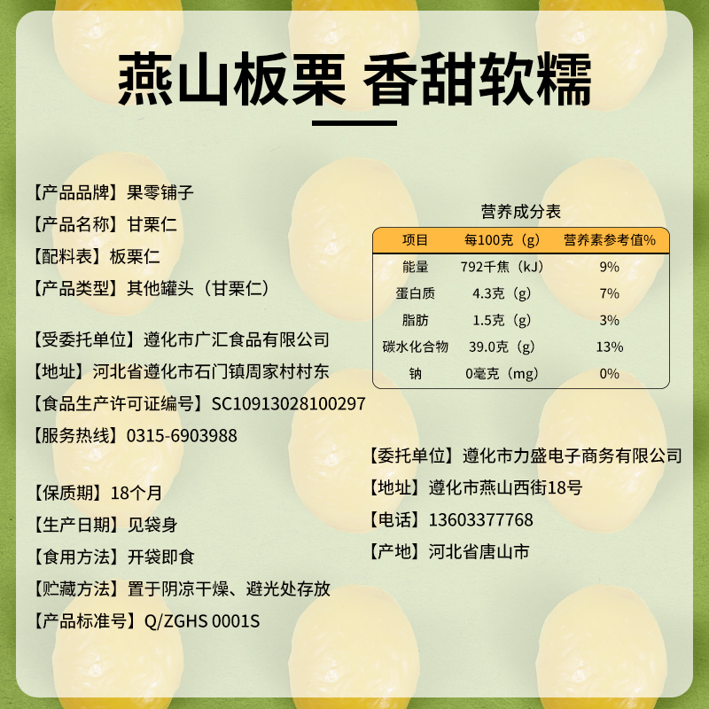 • 商品名称:果零铺子 板栗仁80g即食栗子仁迁西甘栗仁坚果零食熟栗子小包装