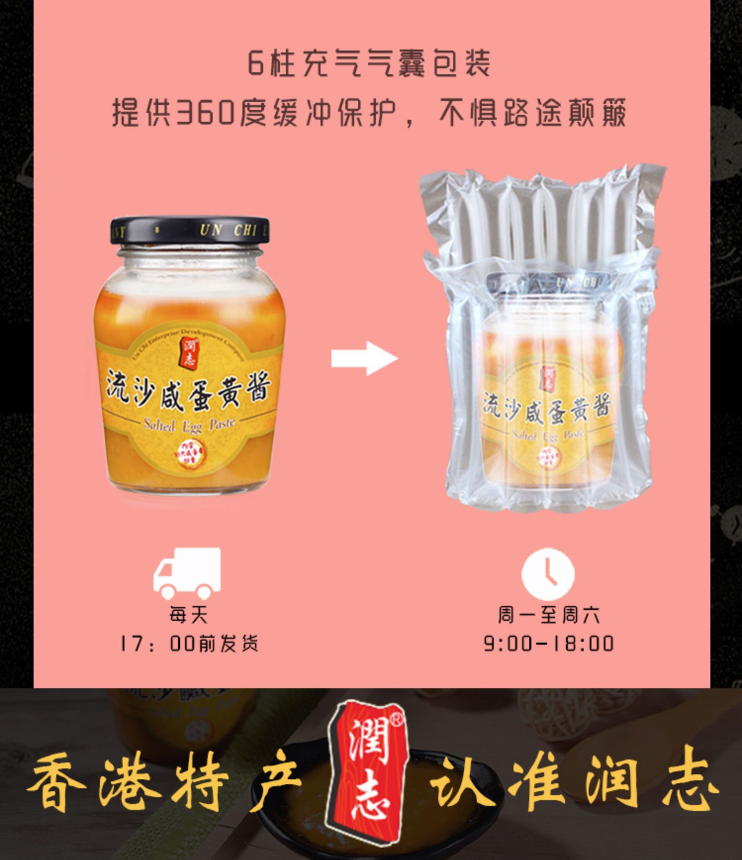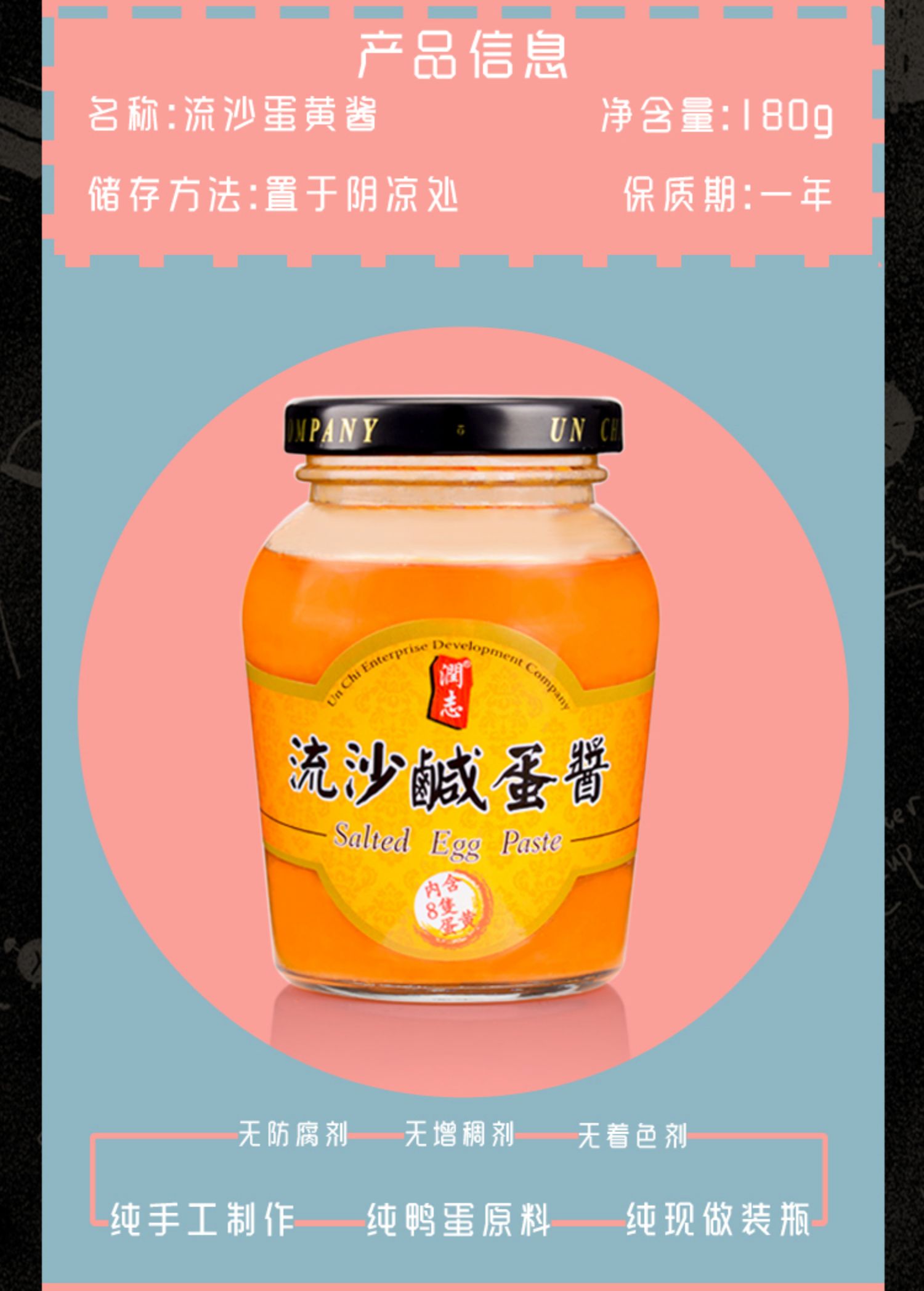 • 商品名称:香港润志流沙咸蛋黄酱即食拌饭酱料下饭菜拌面酱速食广东特产美食