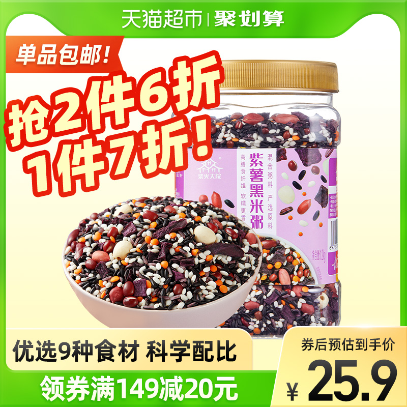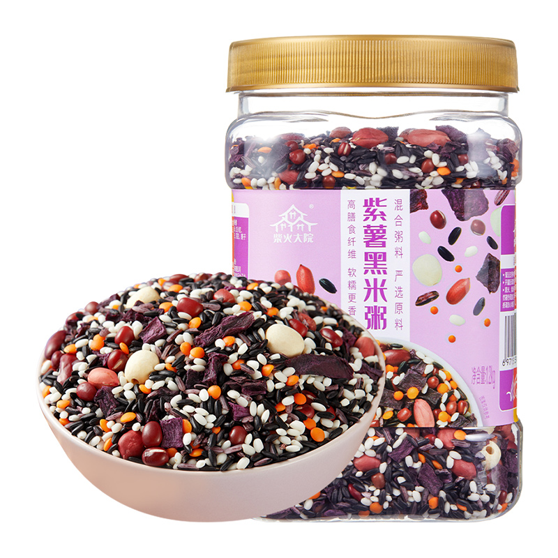 • 商品名称:柴火大院紫薯黑米粥1.2kg五谷杂粮粥 混合煮粥料糯米花生米罐装