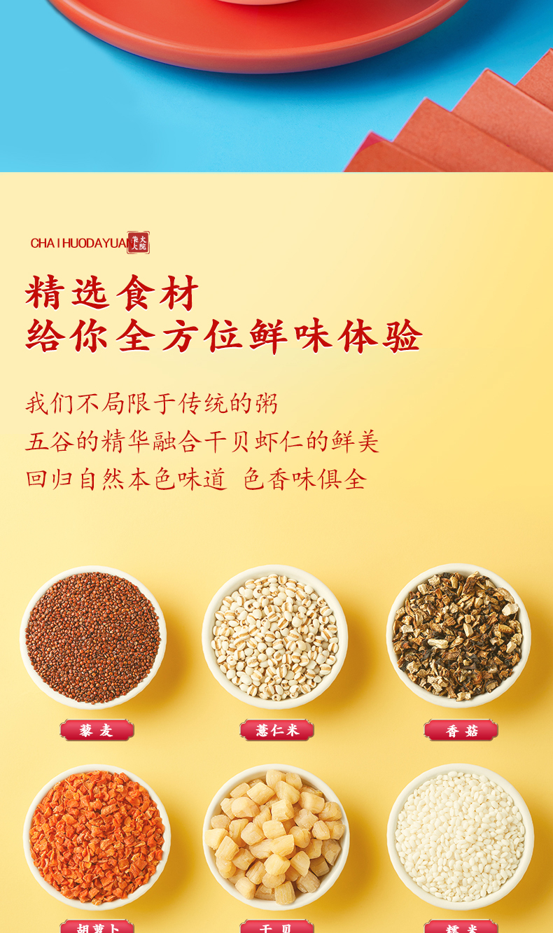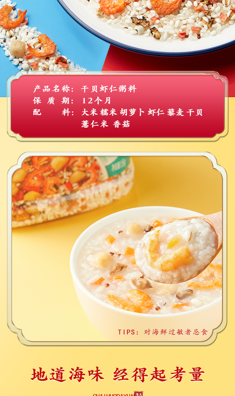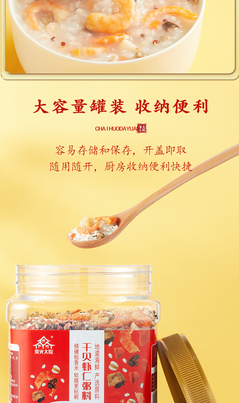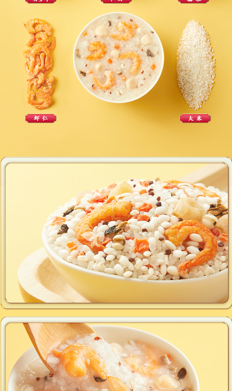• 商品名称:包邮商品柴火大院干贝虾仁粥1.5kg海鲜粥五谷杂粮 藜麦大米年货