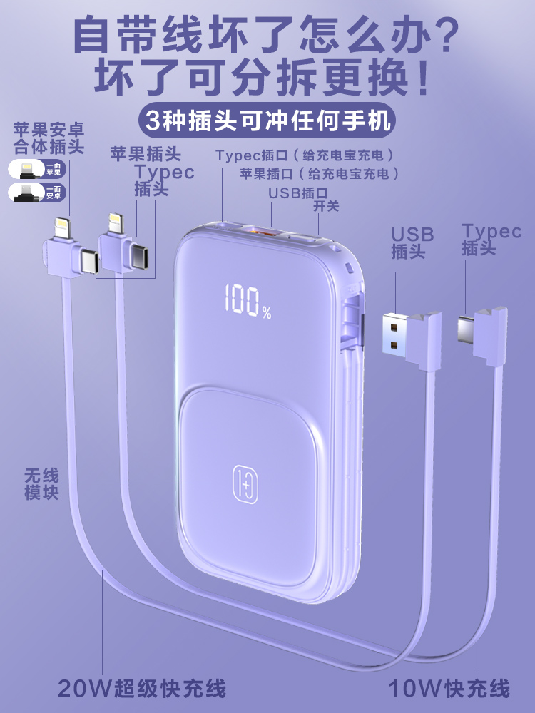 • 商品名称:适用huawei华为40W磁吸无线充电宝2万毫安快充超大容量迷你自带线三合一苹果小米超薄小巧便携官方旗舰店正品