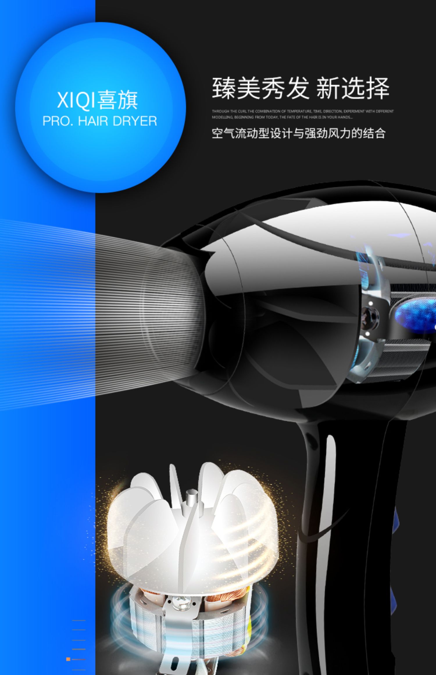 • 商品名称:喜旗吹风机家用理发店大功率发廊冷热风负离子宿舍电吹风筒不伤发