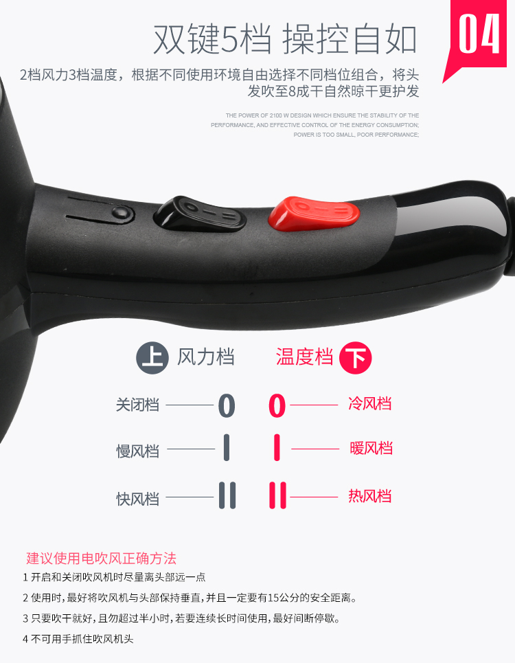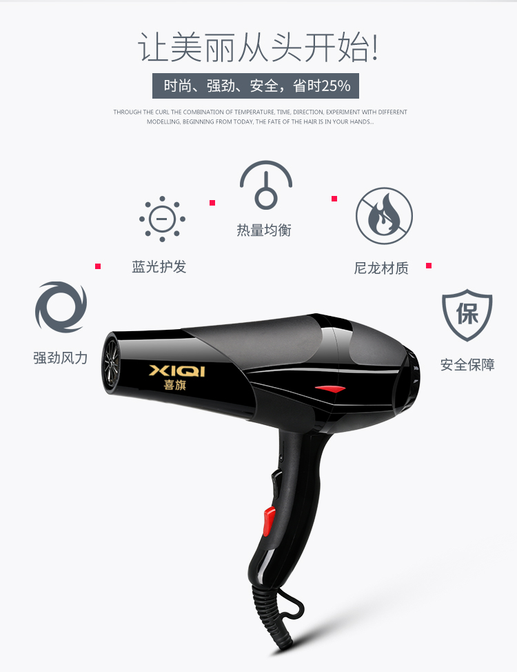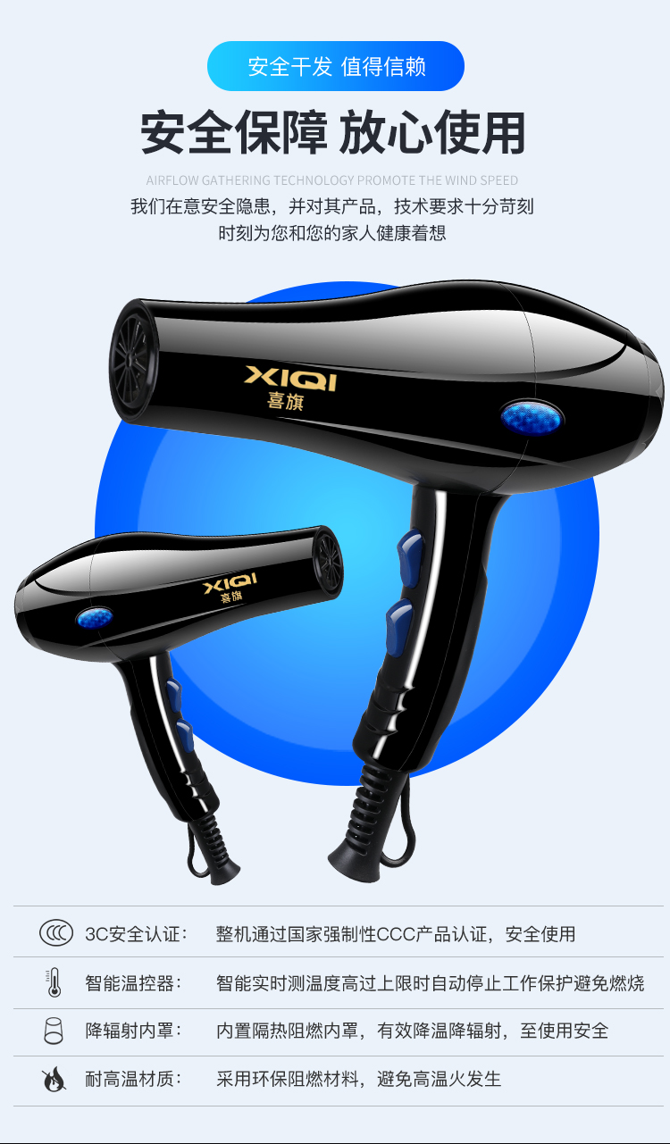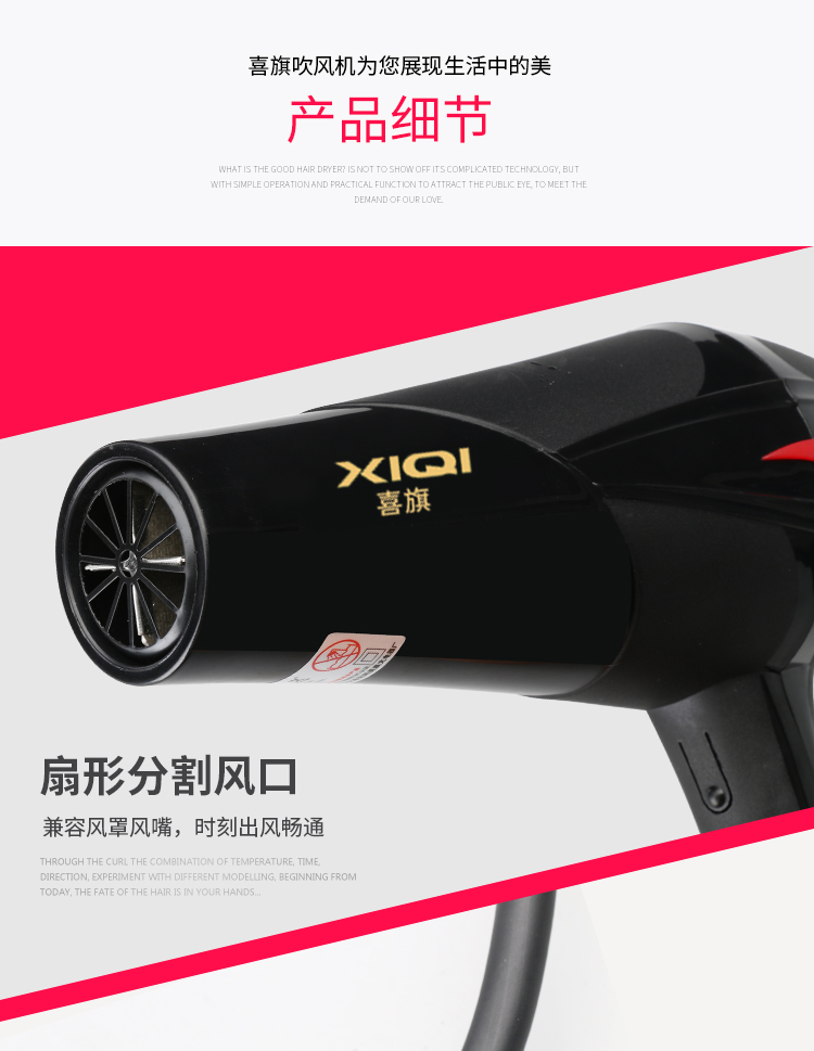 • 商品名称:喜旗电吹风机发廊家用大功率宿舍用学生网红吹风筒不伤发冷热静音