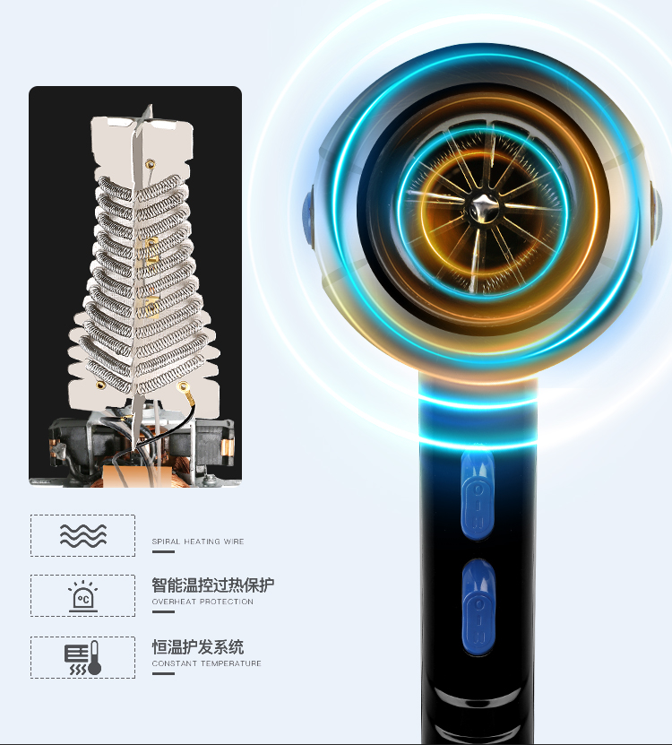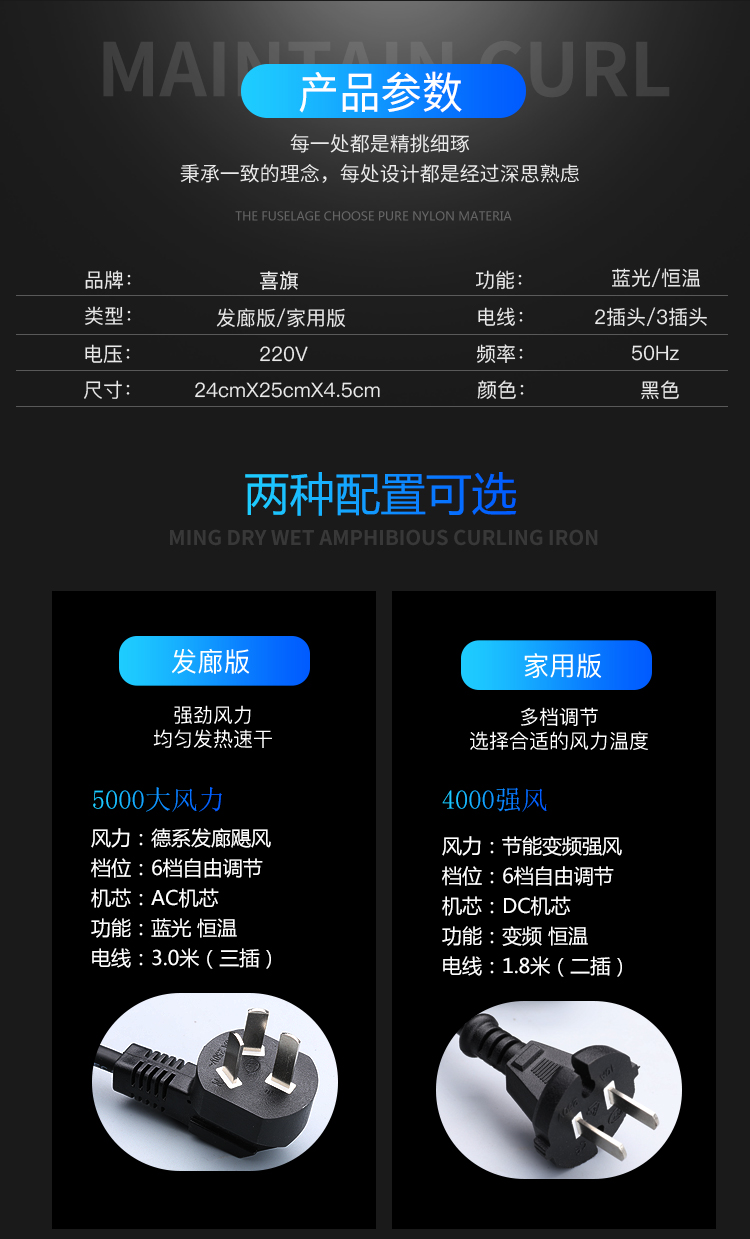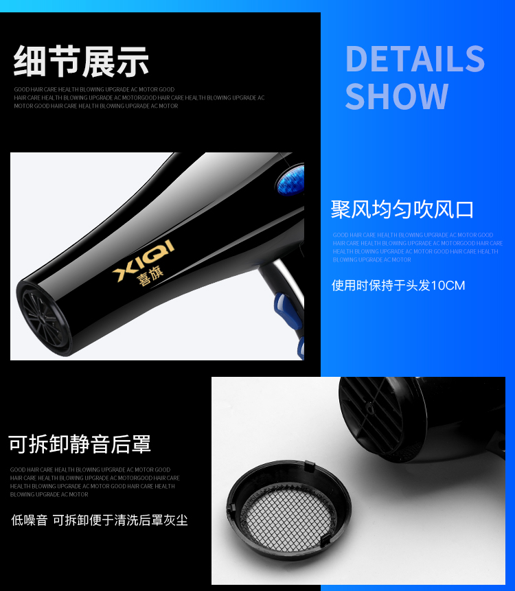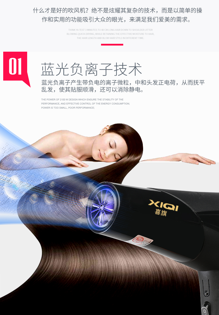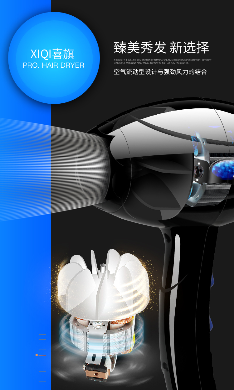 • 商品名称:喜旗电吹风机发廊家用大功率宿舍用学生网红吹风筒不伤发冷热静音