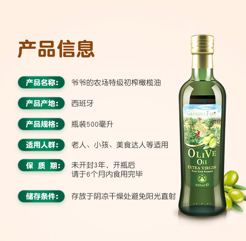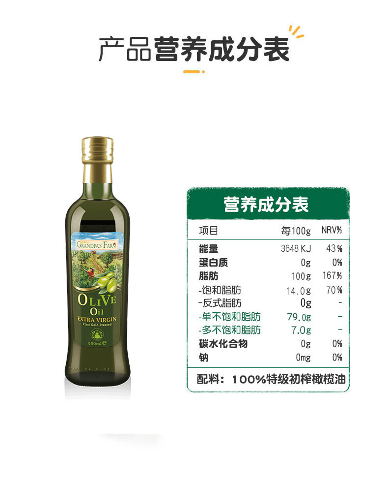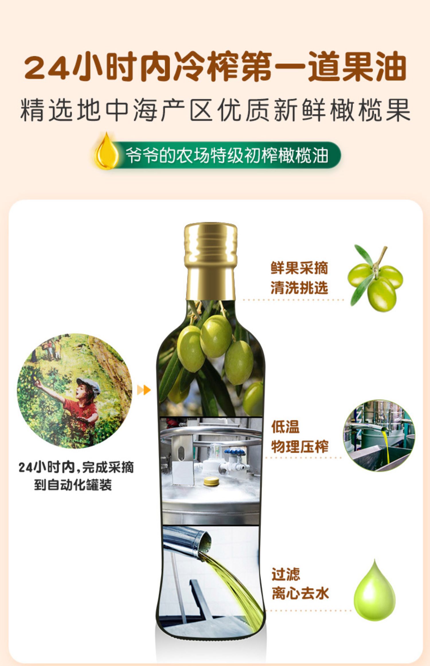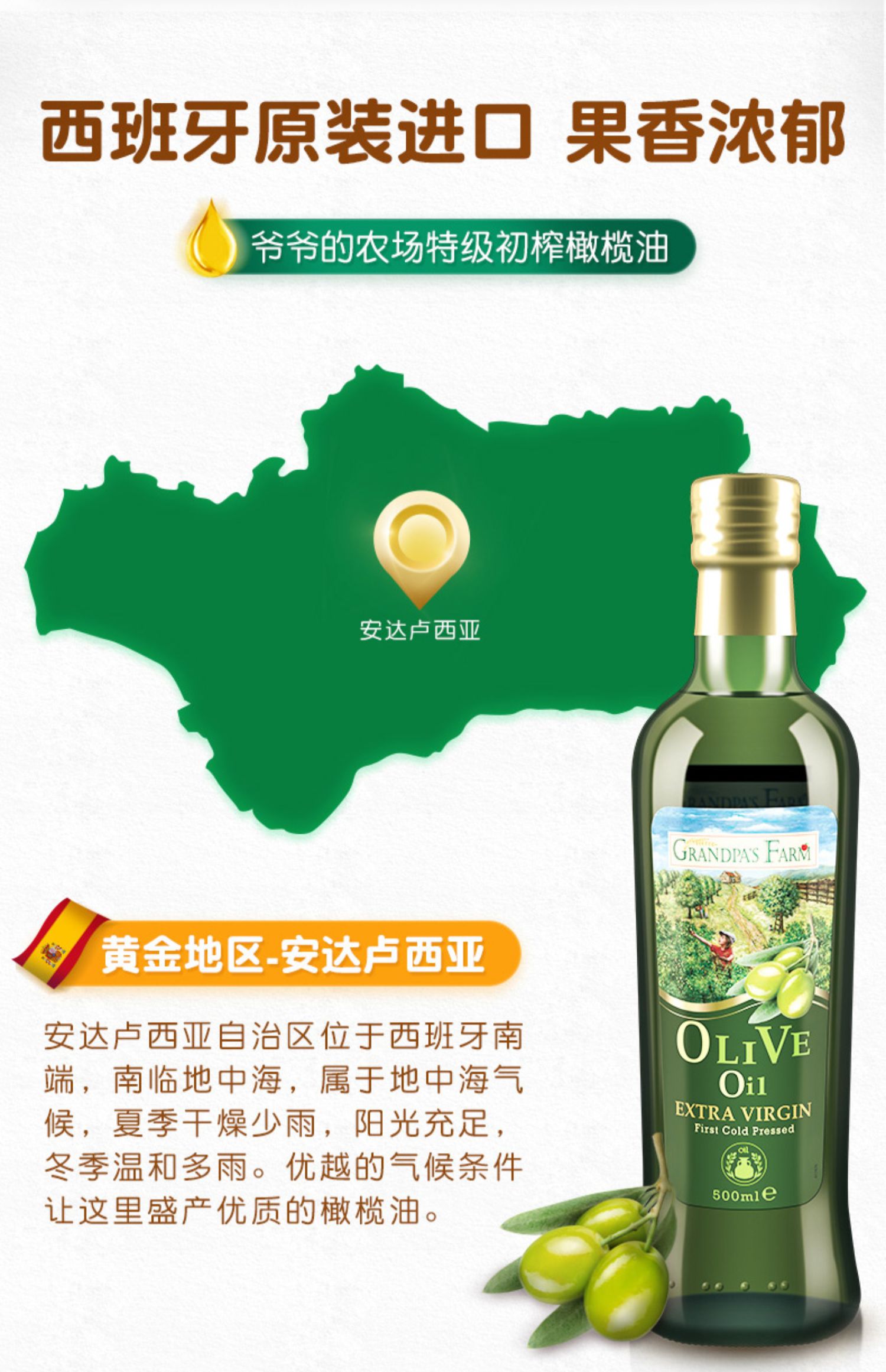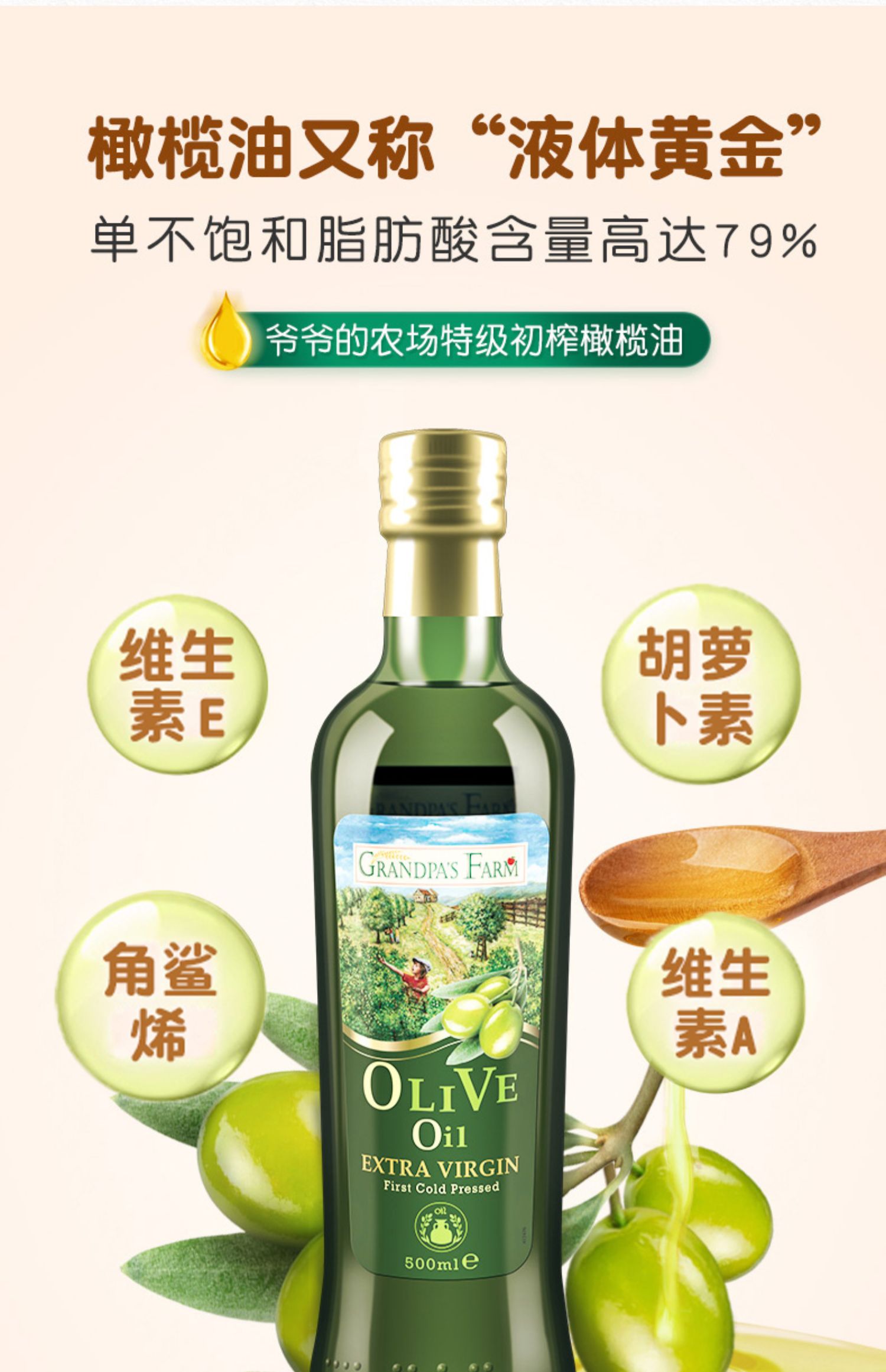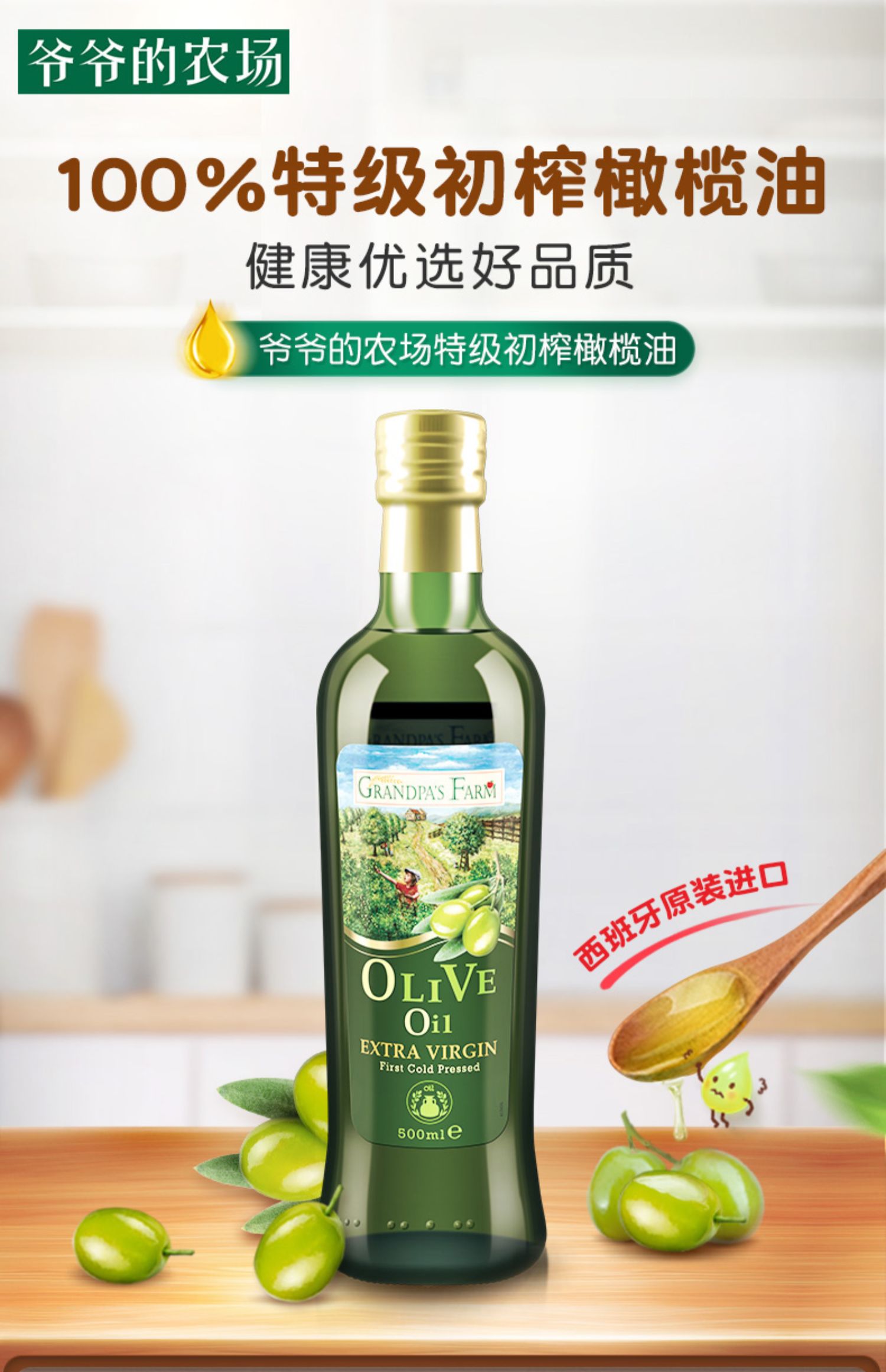 • 商品名称:【开春礼盒】爷爷的农场特级初榨橄榄油西班牙热炒食用油500ml*1