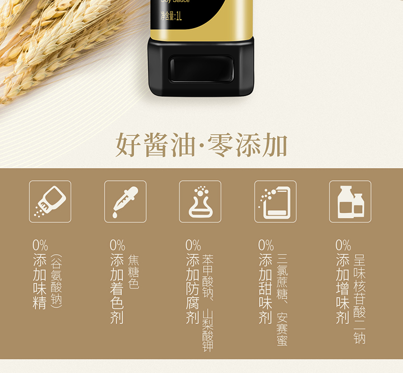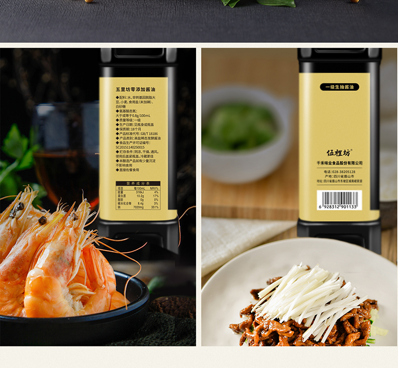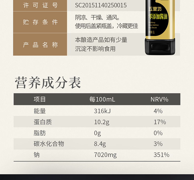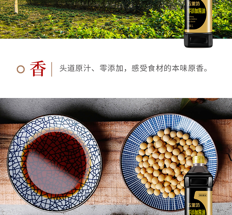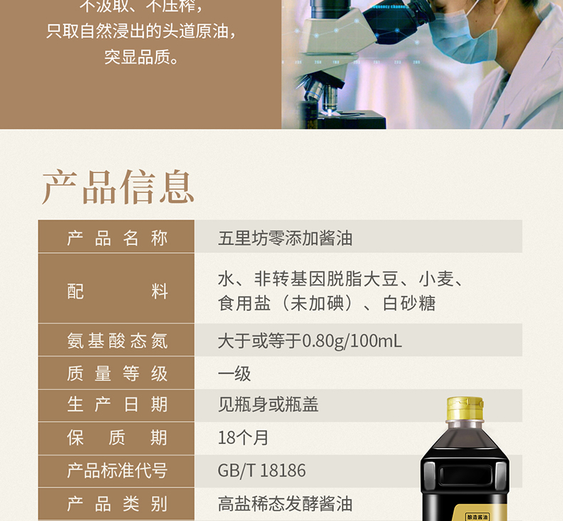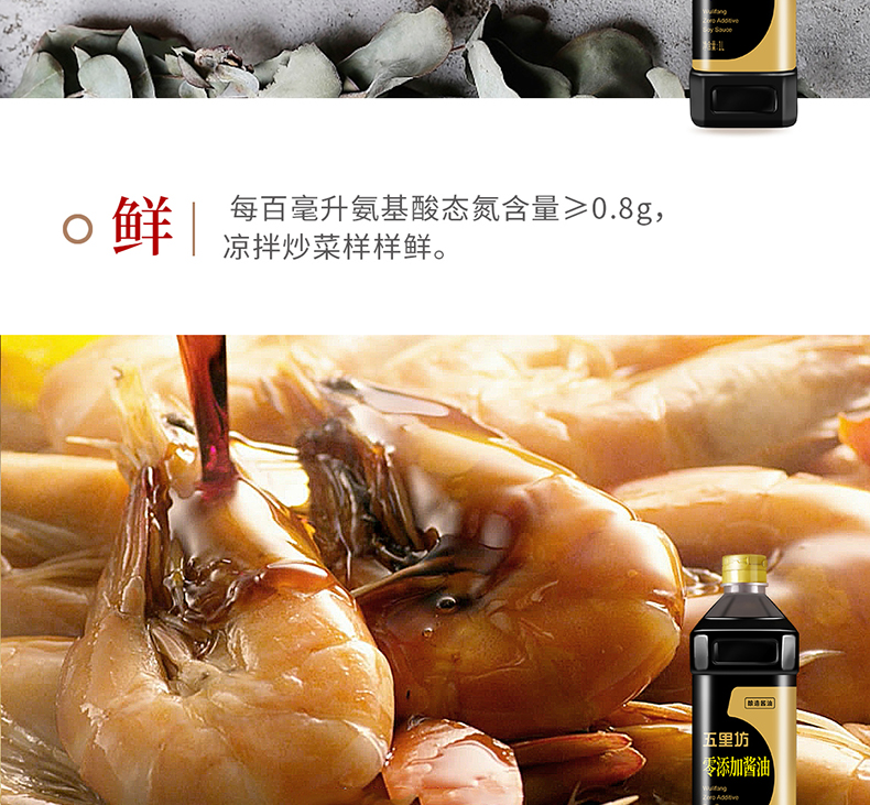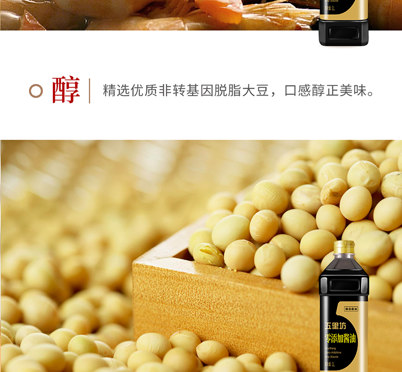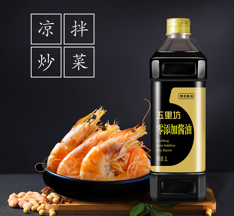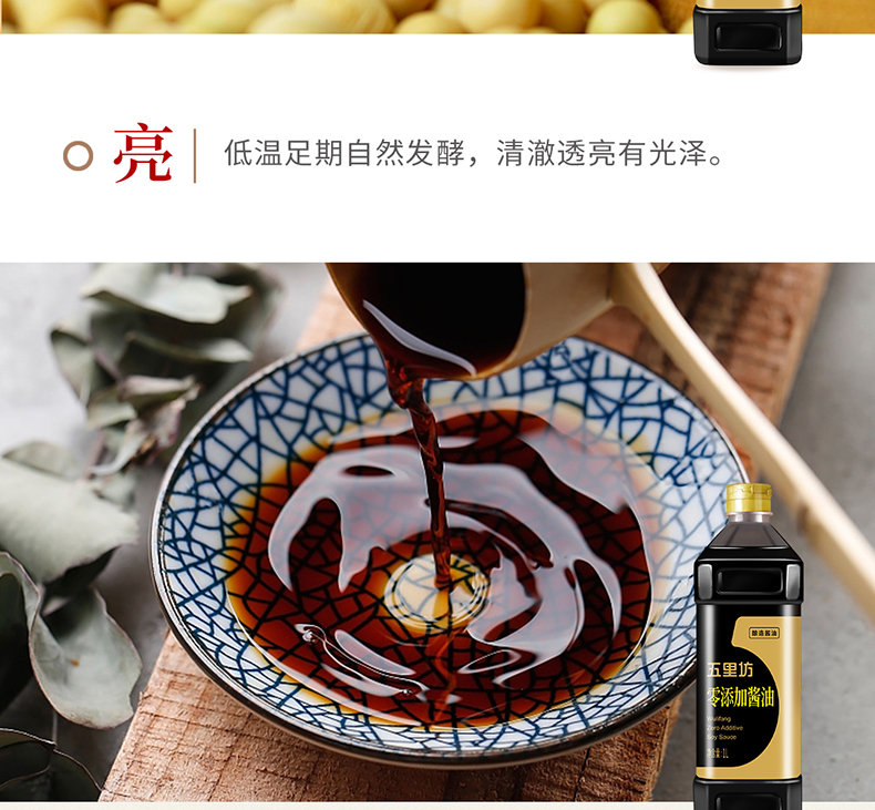• 商品名称:五里坊 零添加酿造生抽酱油 家用调味生抽 炒菜凉拌未加碘