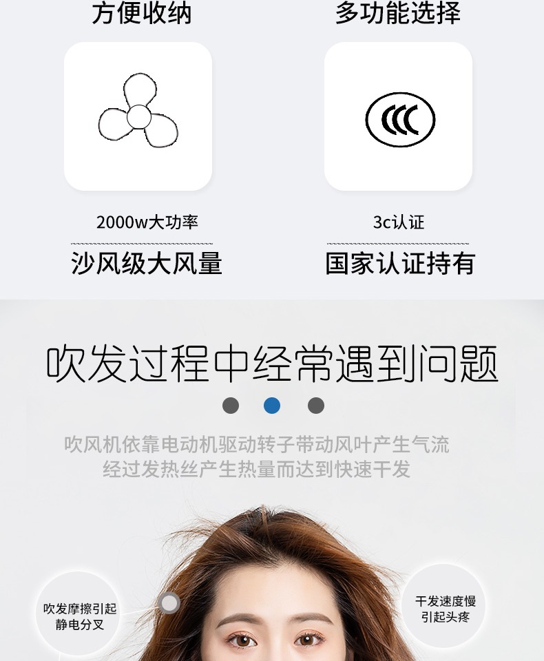 WATTS家用2000W电吹风机冷热风大功率负离子发廊专业吹风筒恒温