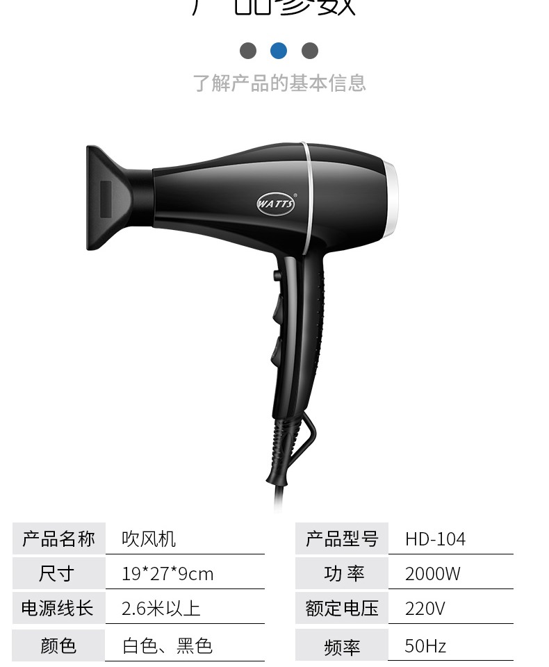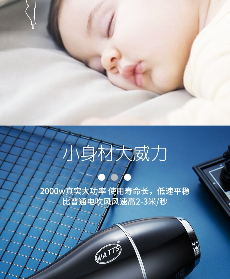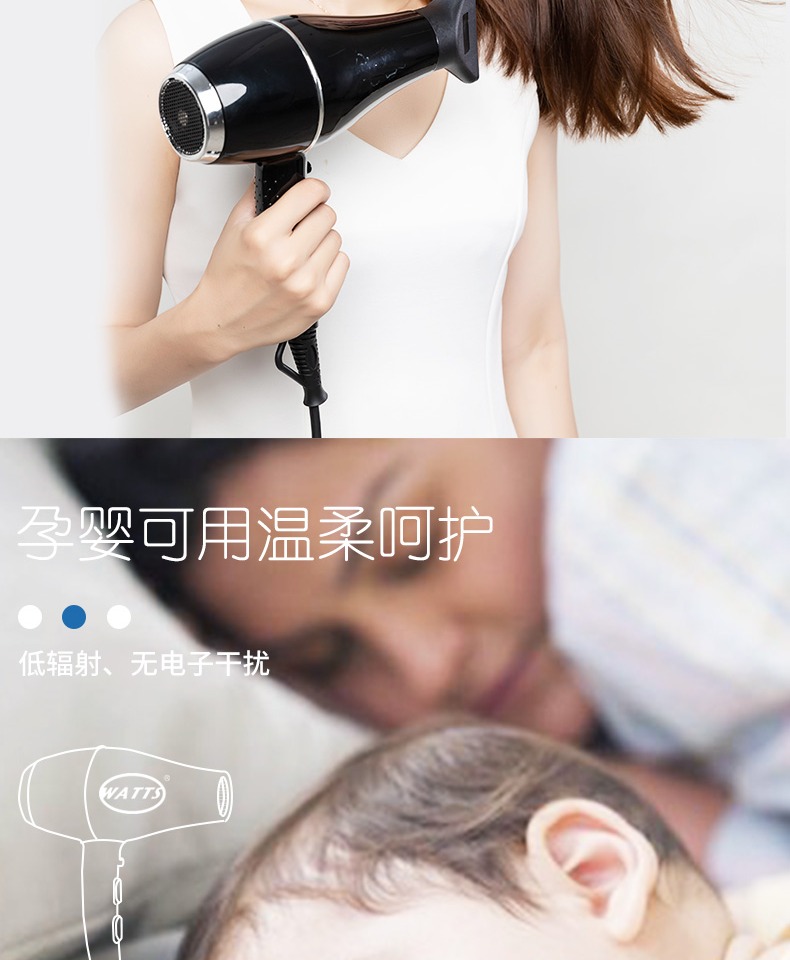 • 商品名称:WATTS家用2000W电吹风机冷热风大功率负离子发廊专业吹风筒恒温