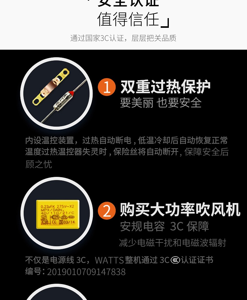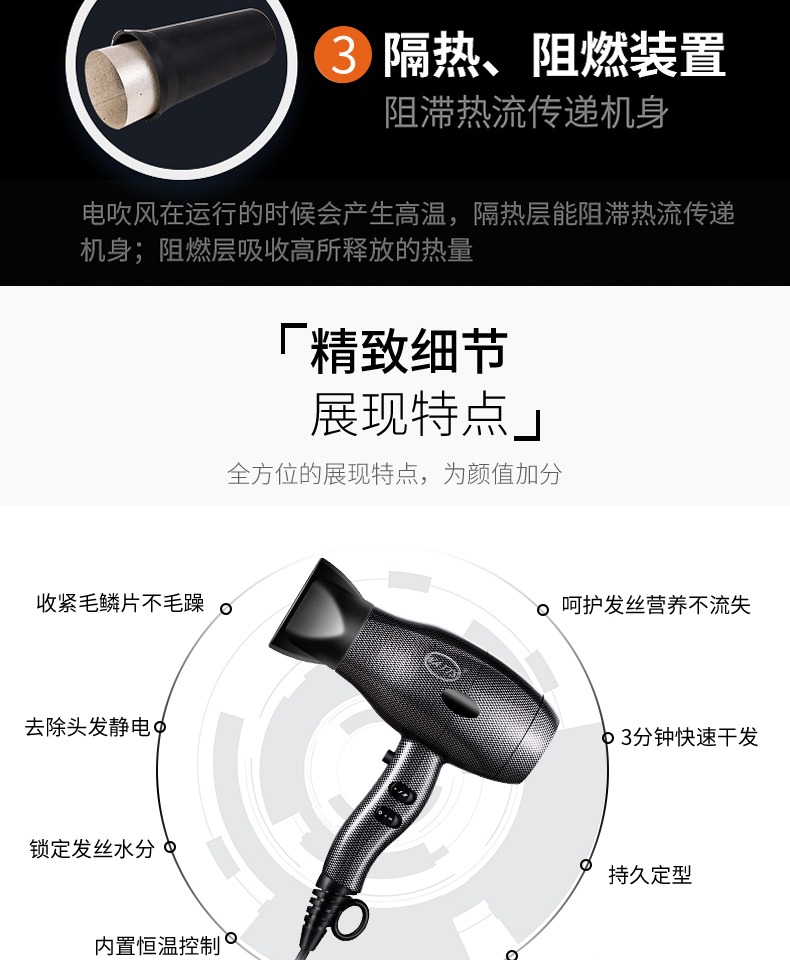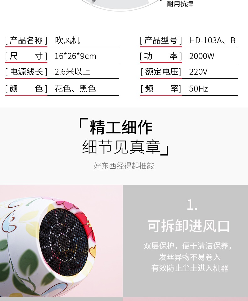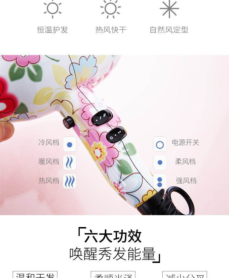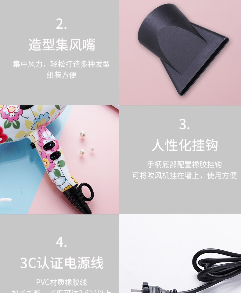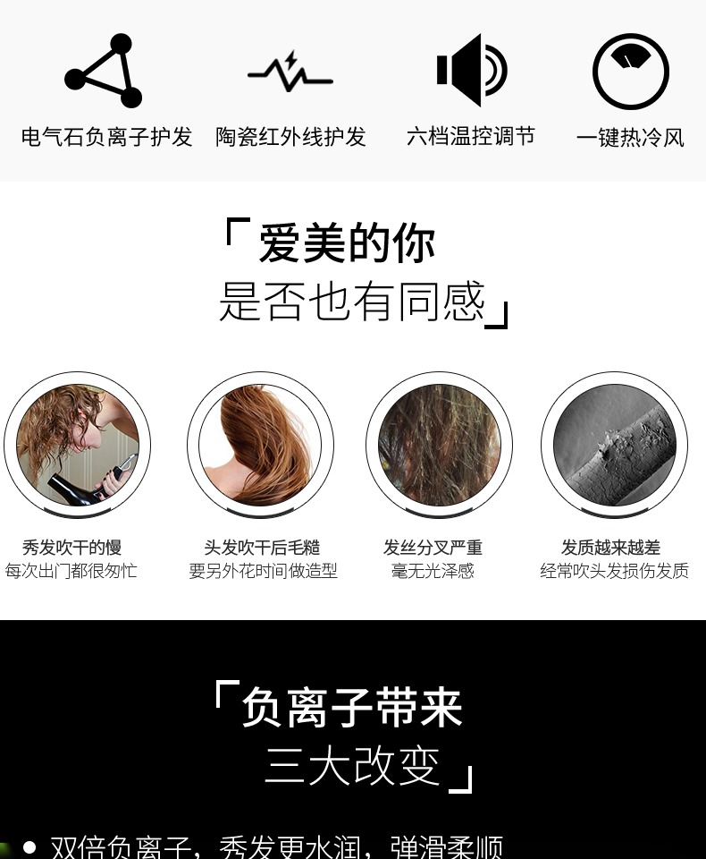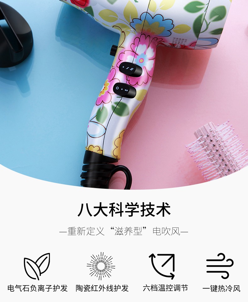 • 商品名称:WATTS强劲风力负离子红外护发家居酒店旅拍无静电不分叉电吹风机